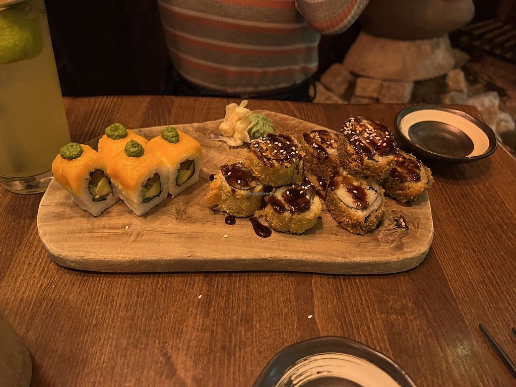 As someone who's never had fish based seafood I was very excited to find a fully vegan sushi place and it didnt disappoint. We got the solo platter and a few extra bits and it was all very good, I avoided the fake fish as it scared me a little (never eaten seafood) 😅 but loved it as a whole! Only knocking a star off as the drinks were just okay and staff weren't super lovely && I cant compare to any other sushi. Would definitely recommend 🩷