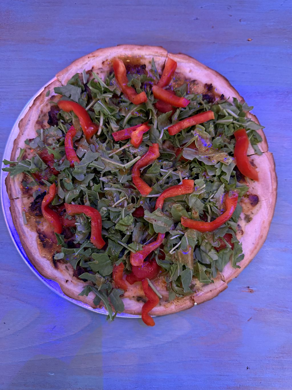 I had the GF version of A bsolom pizza: roasty tomato, chili maple curls, smoky Goodah, po’Fredo, arugula, fresh red pepper, & chili maple drizzle.