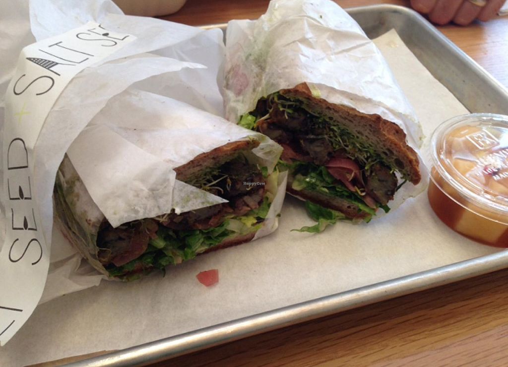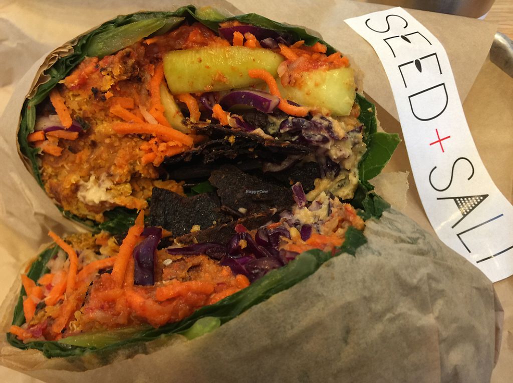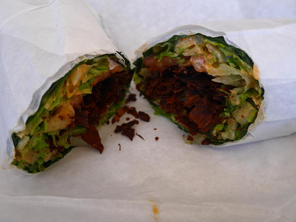 'Eggplant bacon BLT' collard wrap w/ eggplant bacon & vegan mayo