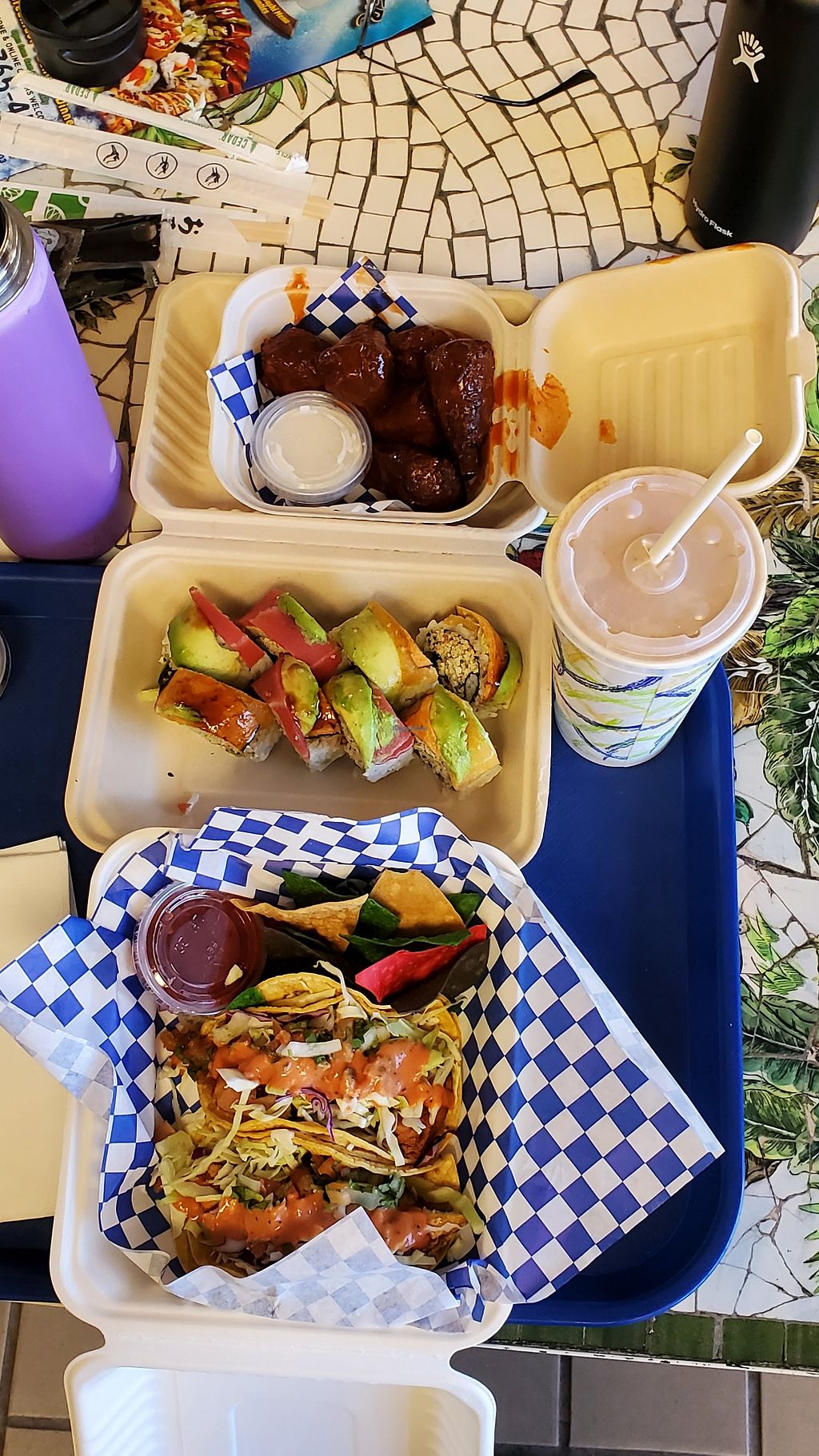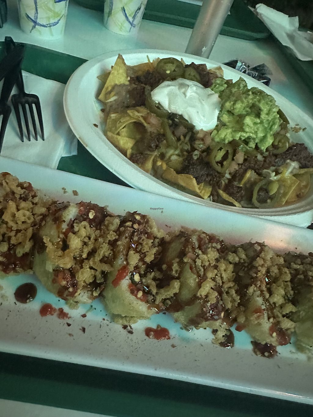 This place has so many options and all the ones I tried with my friends were great. We each got a fancy sushi roll and they were all amazing. We also split nachos with soyrizo. I can’t wait to come back to try the breakfast burrito!