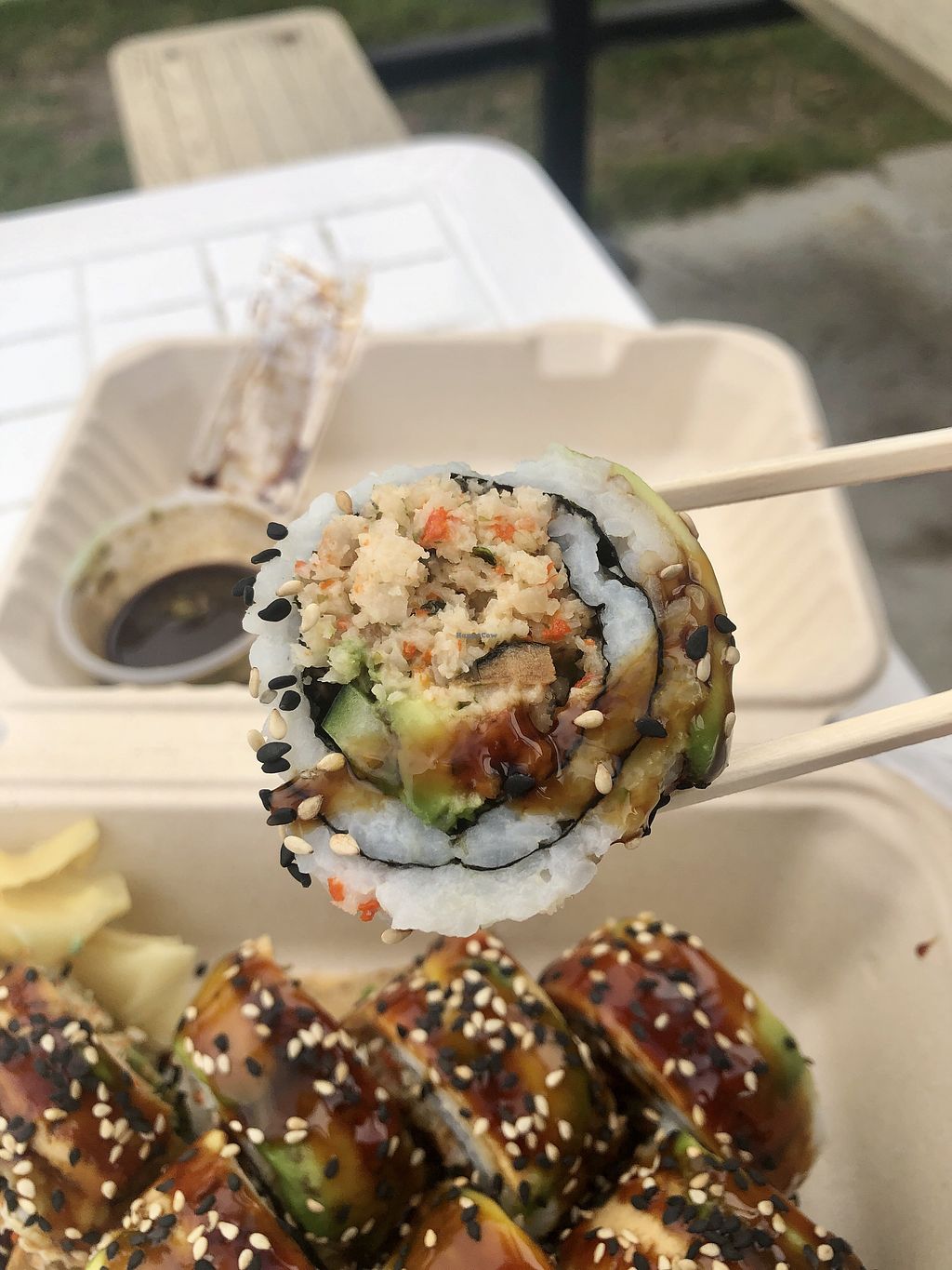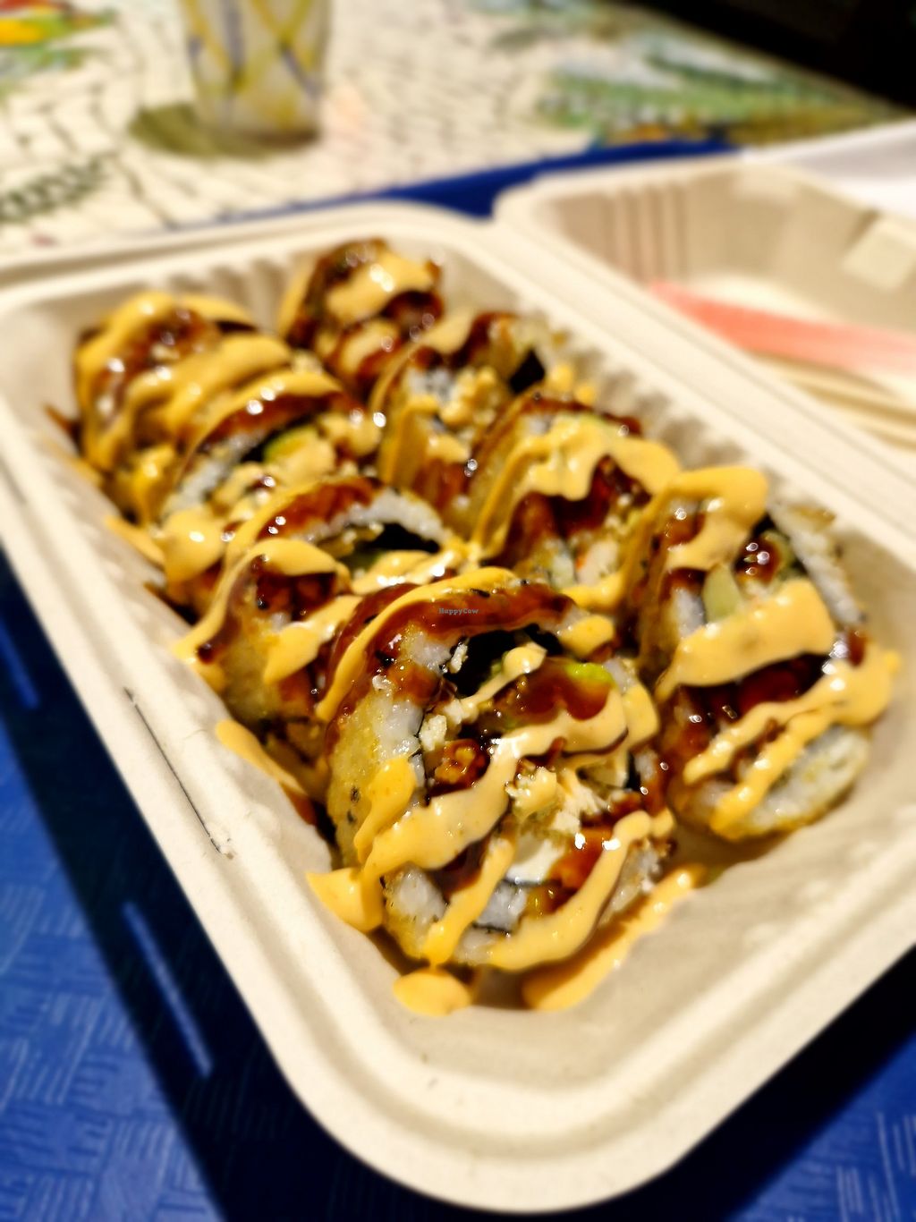 Read moreI learned that they converted to 100% plant based menu over a year ago. I was looking for a 100% plant based restaurant for a quick late lunch. I decided on the Eel Roll. It was delicious. I like the different ingredients in the roll and the unagi sauce. The roll come with sushi ginger and wasabi. Soy sauce packets are available at the counter.