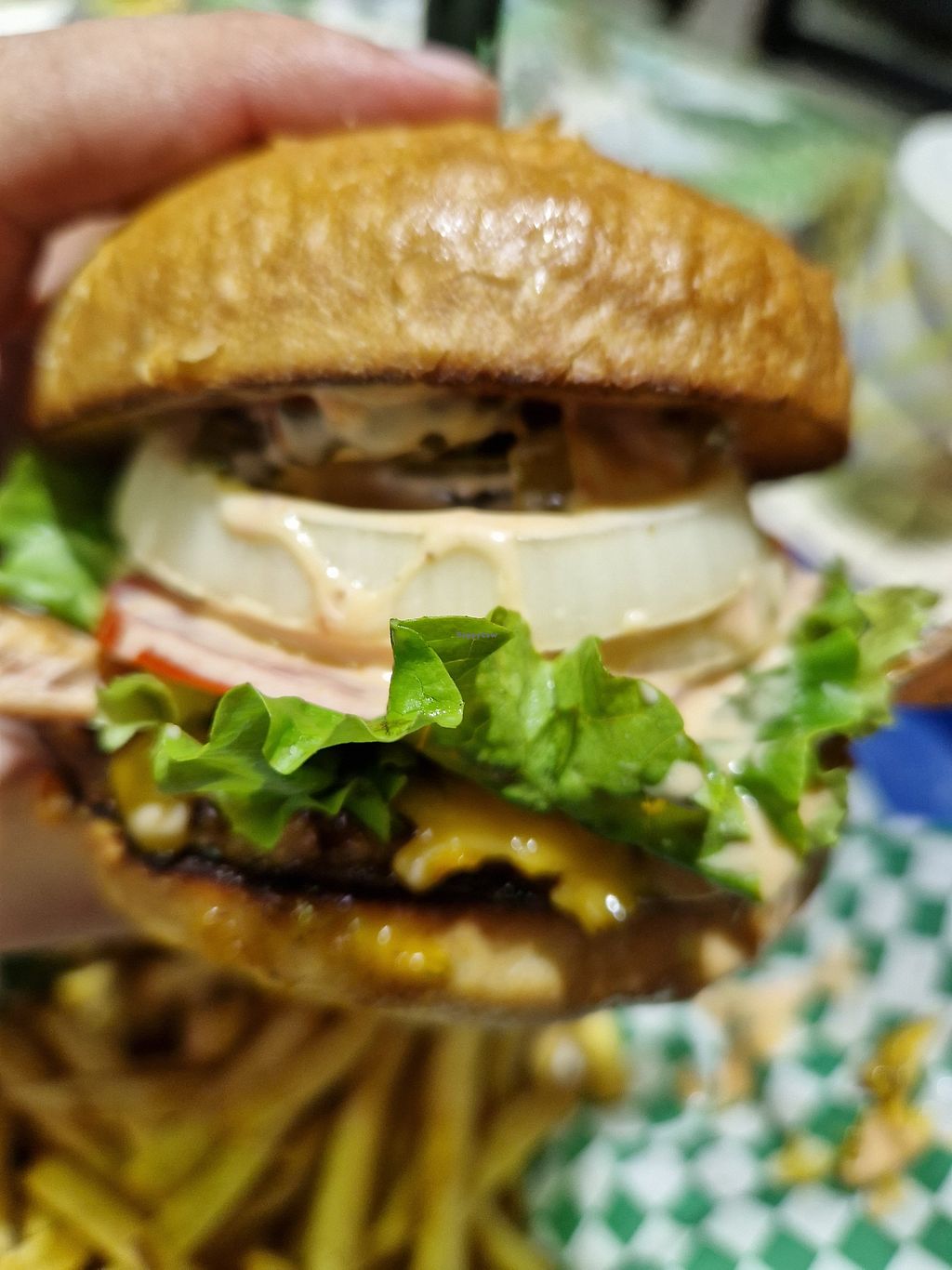Sometime you just need a vegan burger and fries… that’s loaded with jalapeños, guacamole, pepper jack cheese and bacon. And this burger hits the spot.