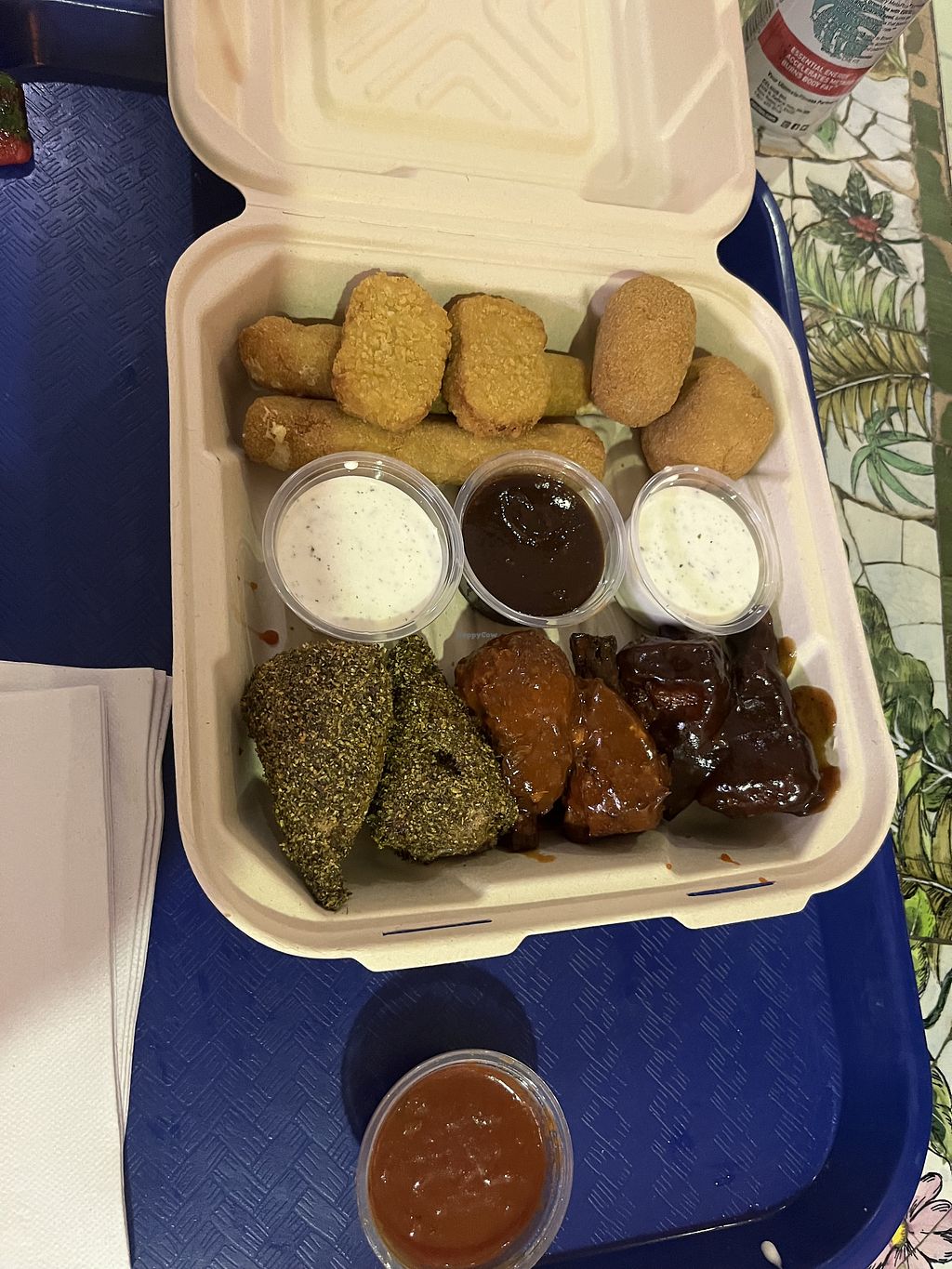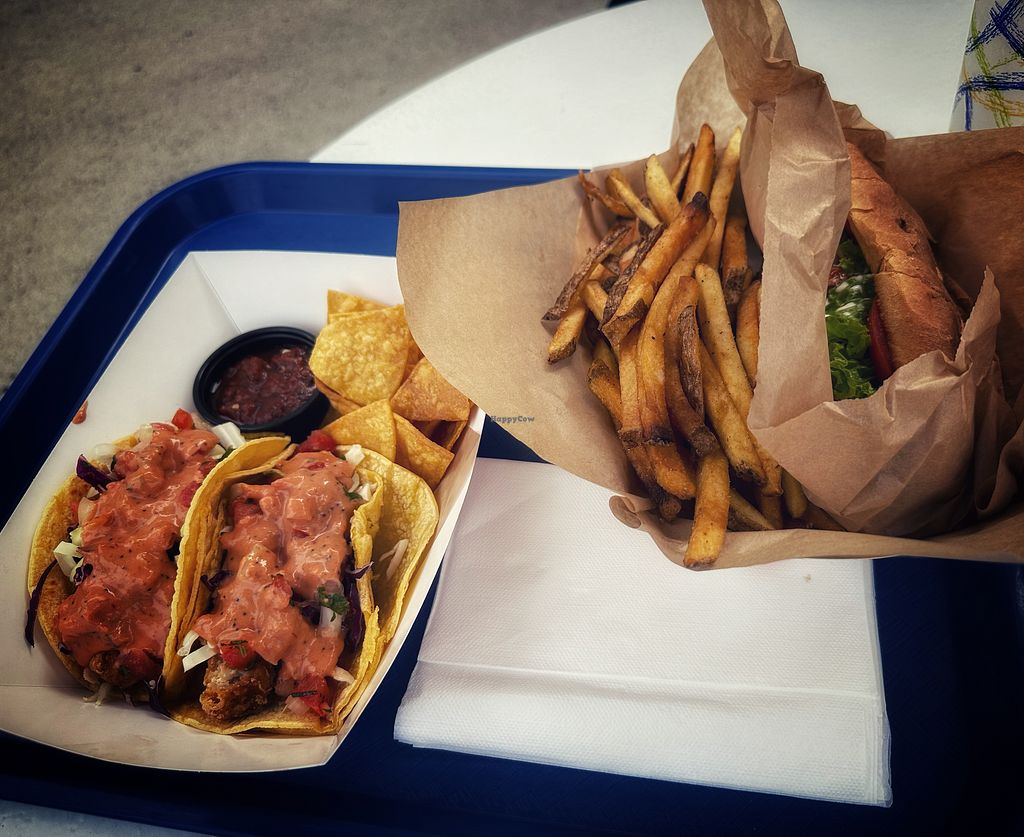 This was our first trip here, and we both went with the fried vegan comfort food.  one of us had the chicken, buffalo ranch, and the other had the fish tacos. And very much enjoyed it. We look forward to trying other items on the menu.