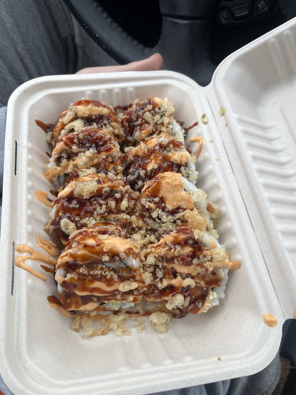 Had the crispy buffalo ranch sandwich and it definitely filled that craving for a greasy, fast food style meal. The menu is very large and I wish we had tried some of the sushi