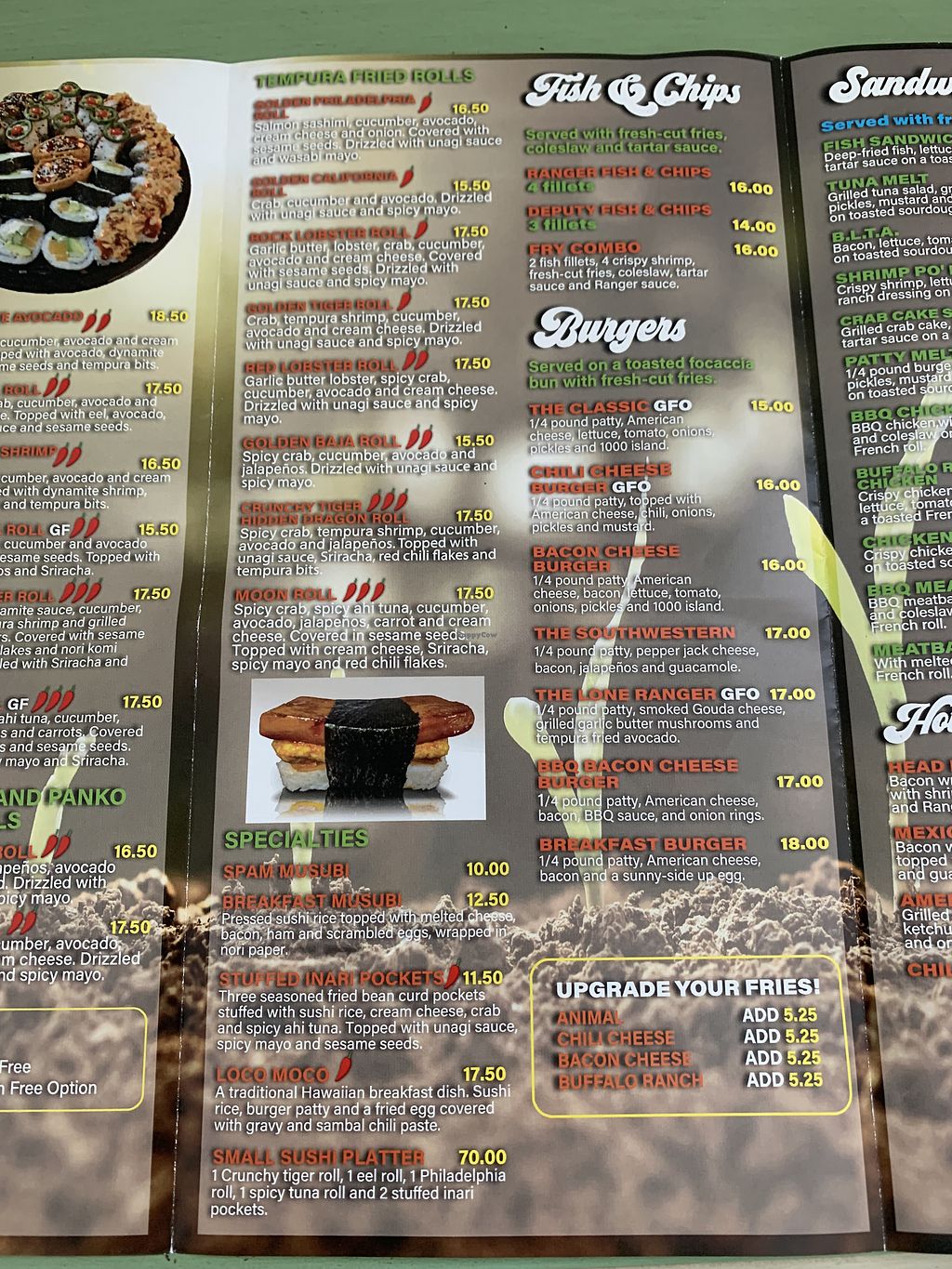 Read moreUpdate: sea ranger is still reliably great. Their menu has expanded a ton, however, and some items have occasionally been more of a miss for me. The beef quesadilla for example uses the same meat and cheese as their burgers, so it felt like a burger quesadilla, kinda weird. I recommend their burgers (esp. patty melt) and sushi for sure tho, even if the rolls are kind of hard to eat in one bite cause they're so big