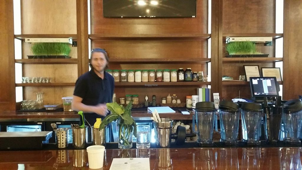 Zach serving a customer at the juice bar