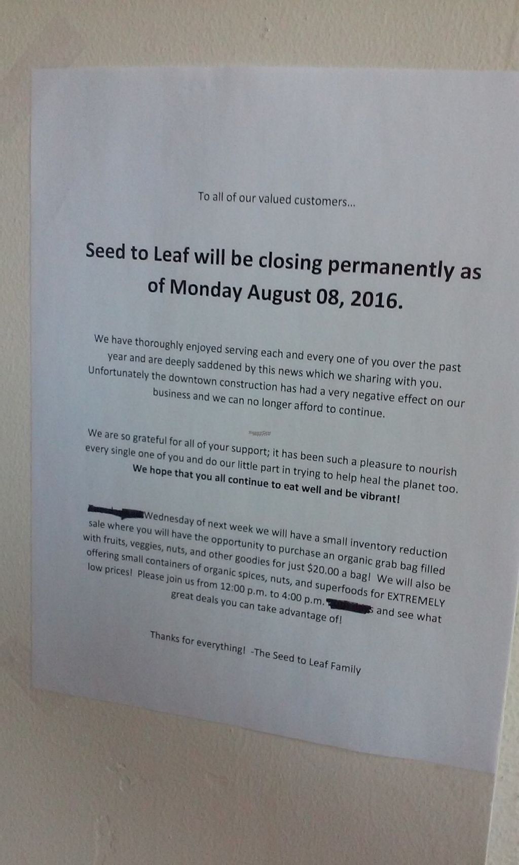 Notice of permanent closure.