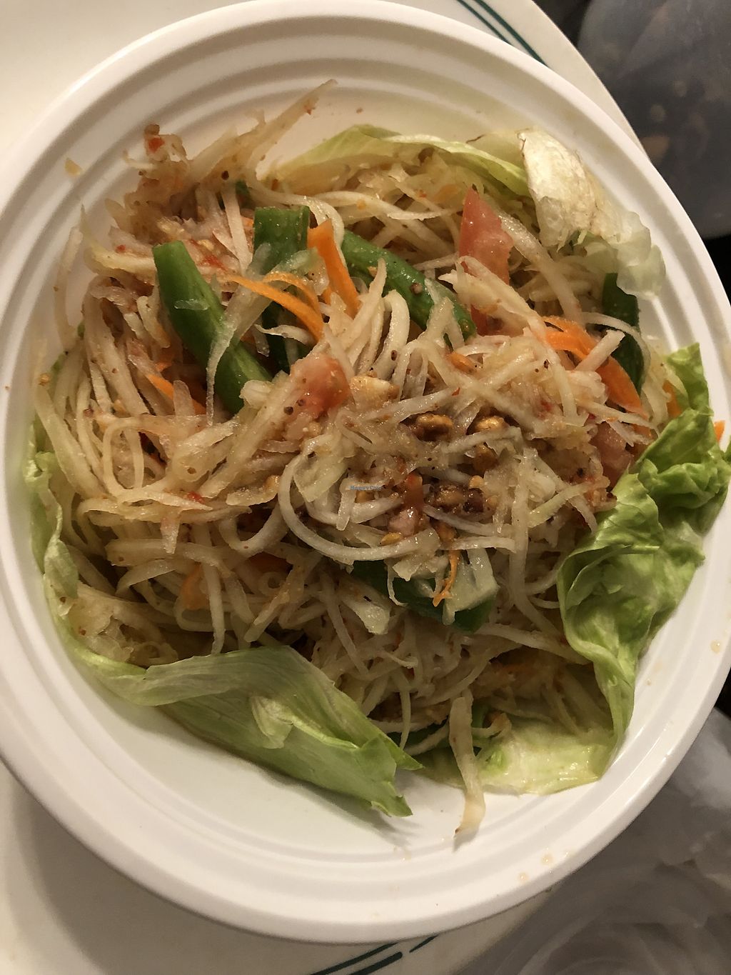 This is the best papaya salad I’ve ever had😄I called first and asked them in the phone the lady said many people are vegan here so their papaya salad doesn’t have fish sauce ,