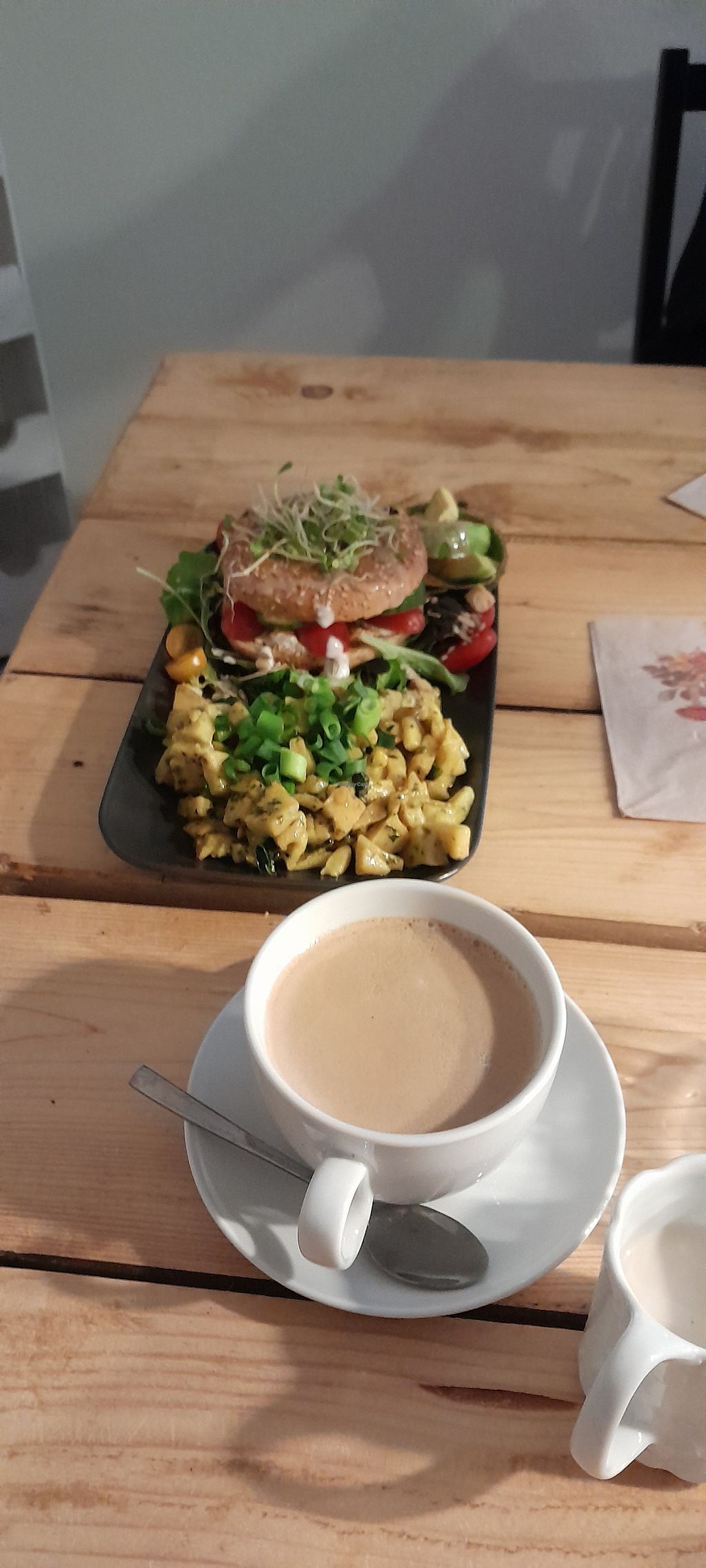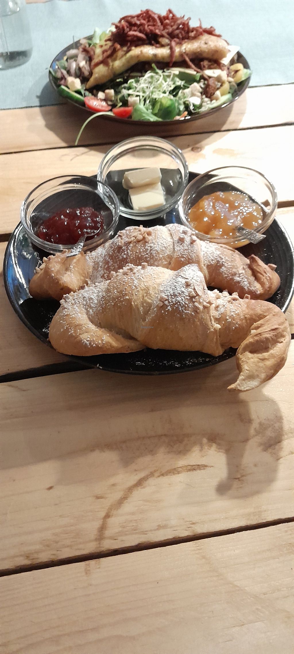 Breakfast “Strammer Max”: Cheese bread with omelette, bacon & salad #V…