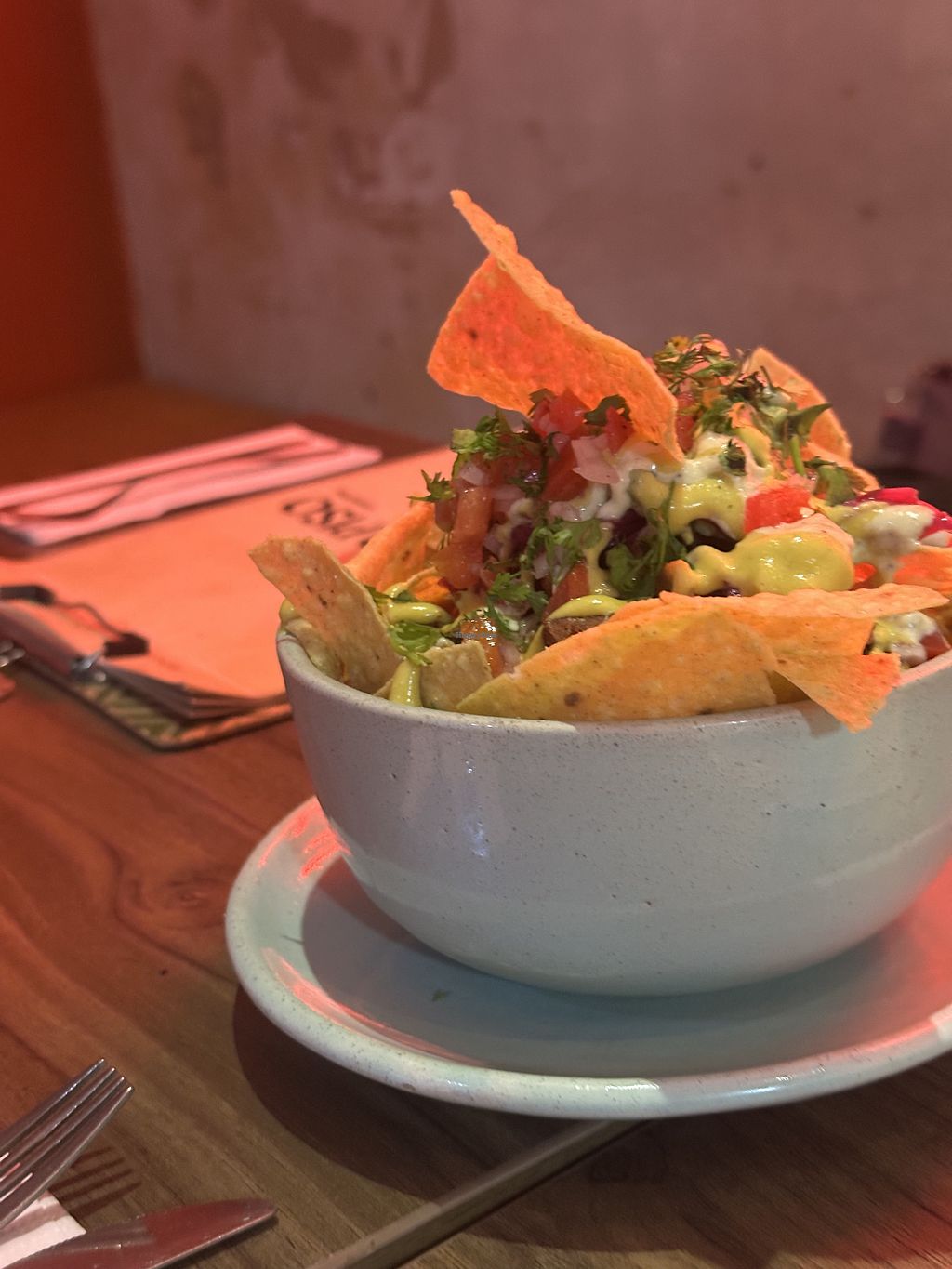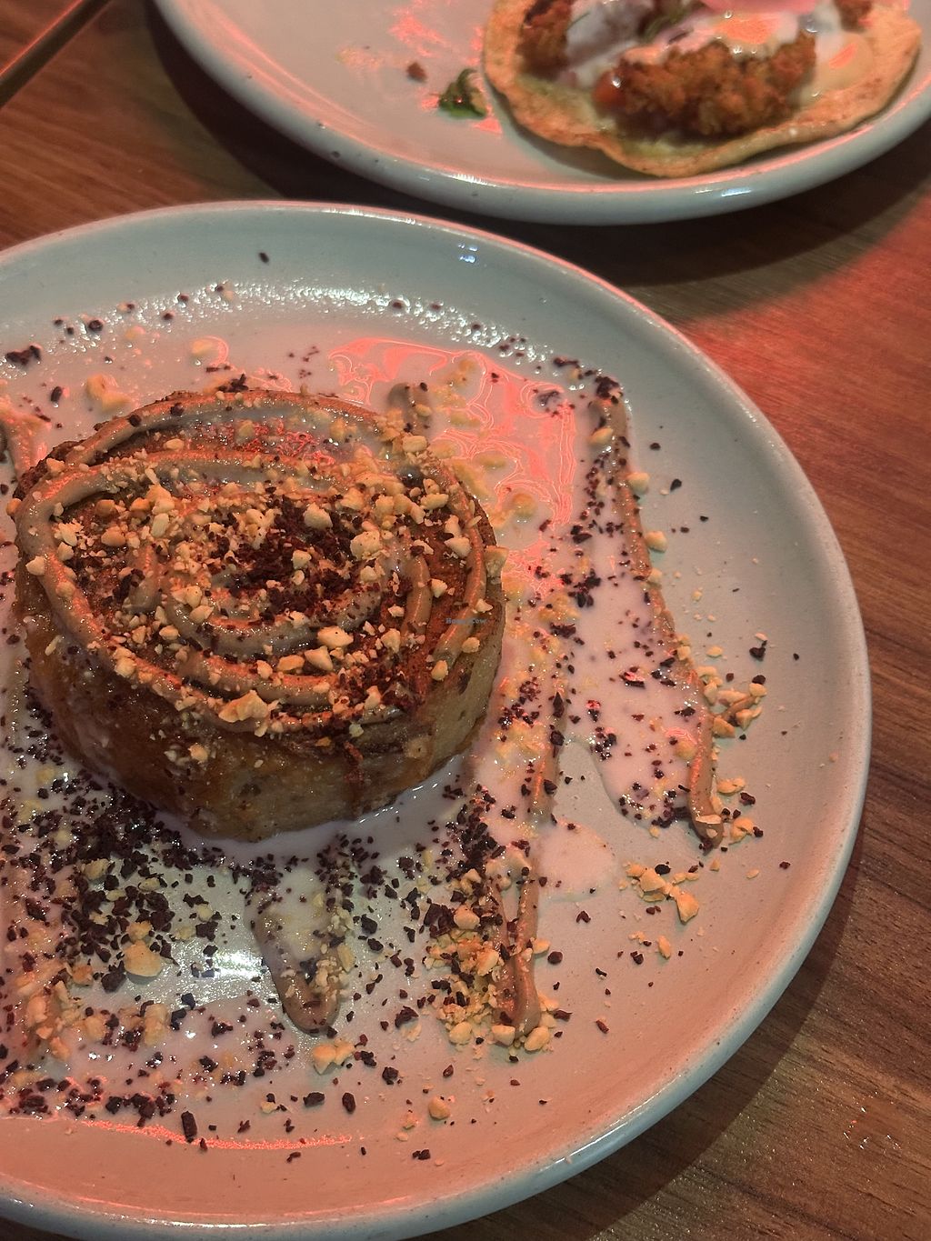 Hard to see, but eggplant croquette tacos. Very tasty!