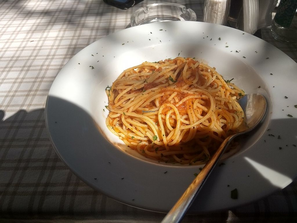 The place is not vegan, but does have decent spaghetti Napoli and vegan pizza, also some vegan entries.