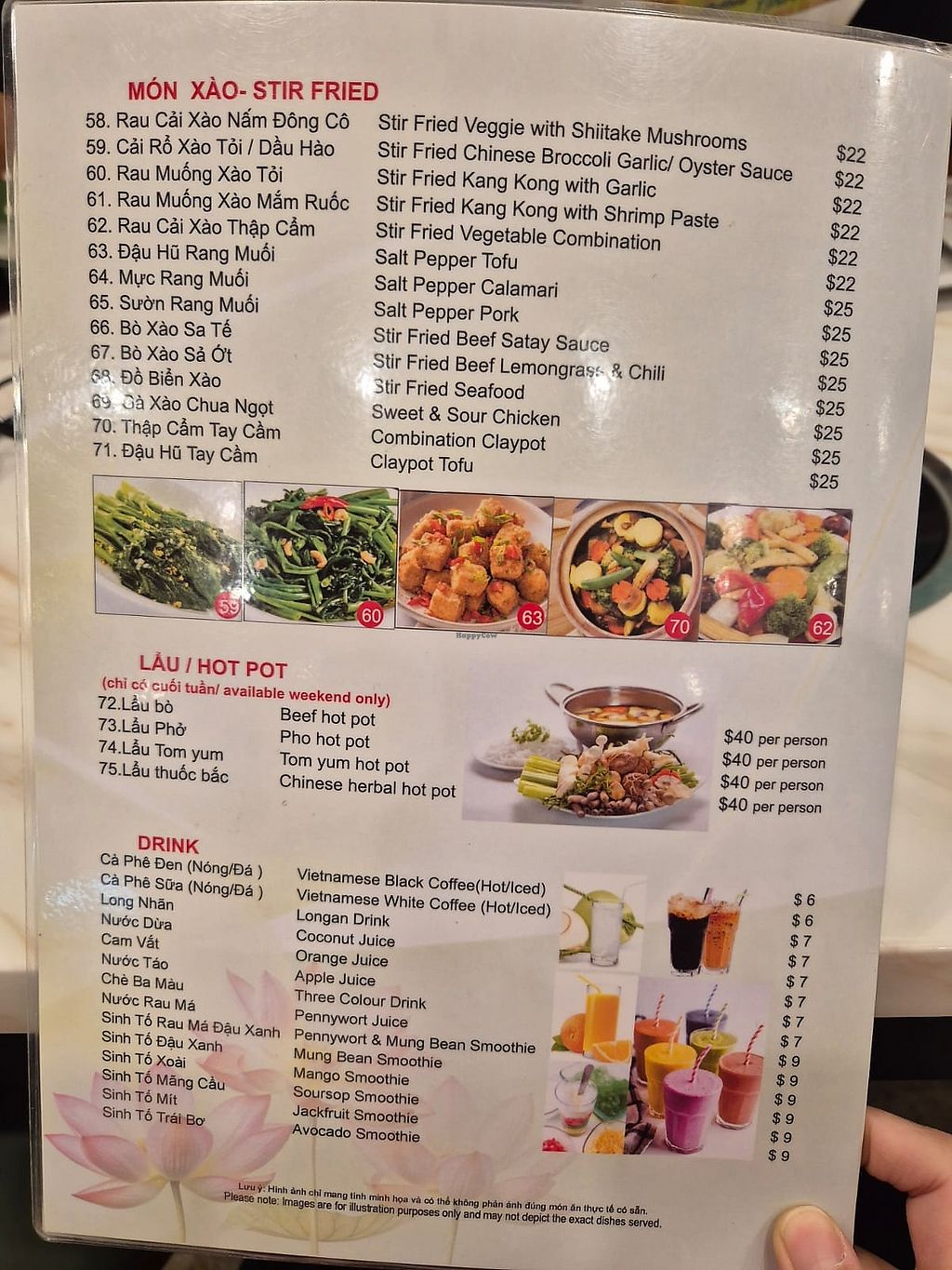 A major concern I had was the owner doesn't know for sure that the fake meat they source is vegan rather than vegetarian (I asked about the presence of milk) and she said she only knew for certain that most of the house-made fake meat is vegan (except for one she said she didn't know as she didn't make it). She said she uses fake meats that are sold in other vegan restaurants and doesn't always have time to check the ingredients (!! what the heck!!). The previously so called vegan Nhi Nuong which is nearby was completely clueless as to the difference, and the fake meats used here I haven't had at other places. To be on the safe side she advised having tofu and veggies only.