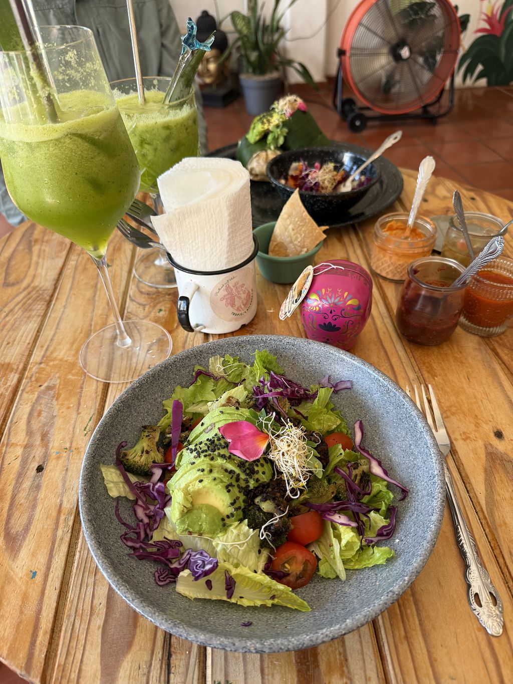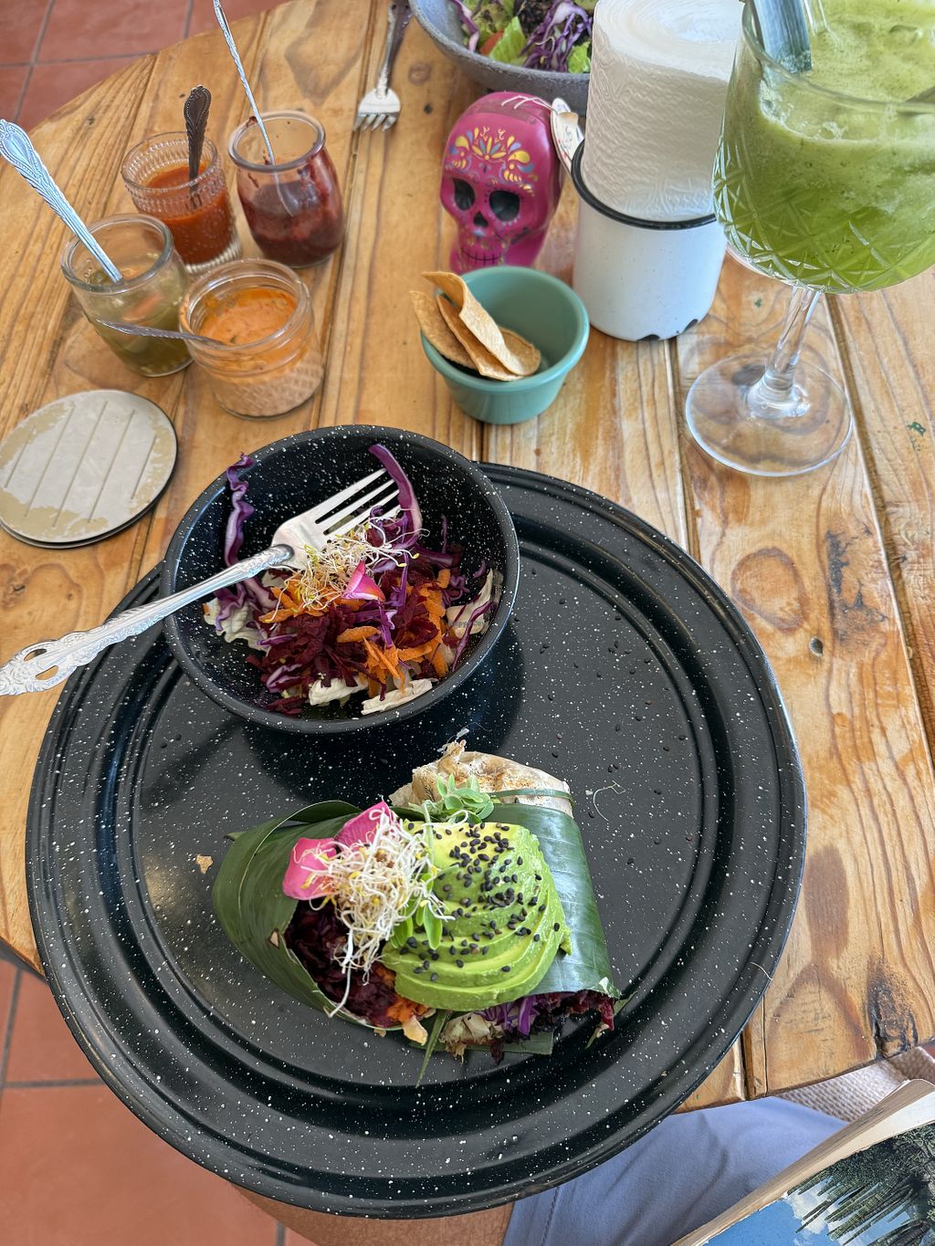 Read moreThe menu was 100% vegetarian and mostly vegan. So make sure to ask in case you are Dairy & egg free. The food was as pretty as it was delicious. It was really hard to choose just one meal, but I went with the Green Chilaquiles and Blueberry smoothie. Everything hit the spot as it should.