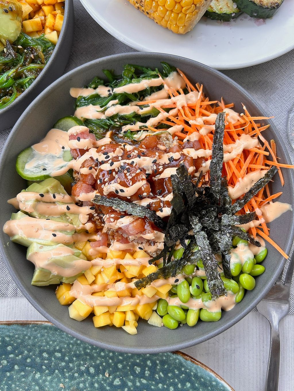 What a stunning restaurant! I had the most gorgeous Quinoa Poke Bowl filled fresh fruits and vegetables and then some amazingly tasty BBQ Tofu Bao Buns. Such a lovely place with really helpful staff.
