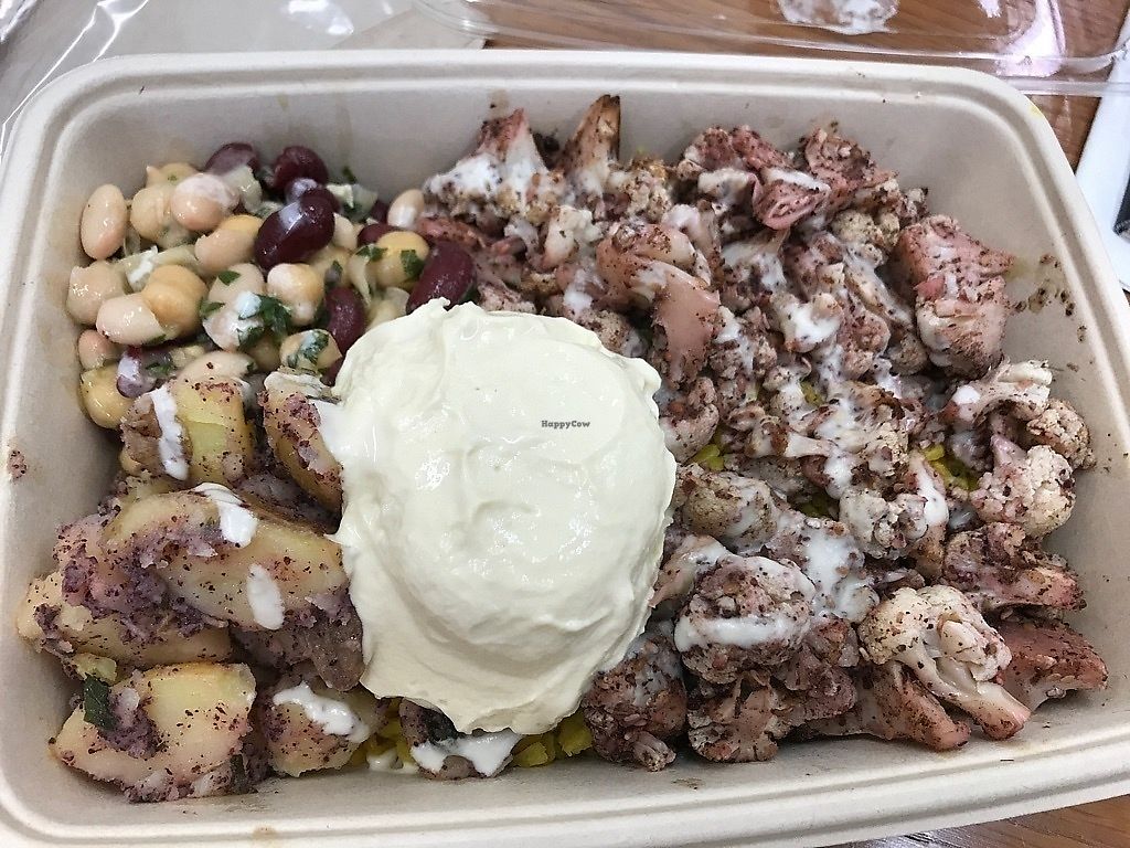 Bowl with rice, cauliflower, hummus