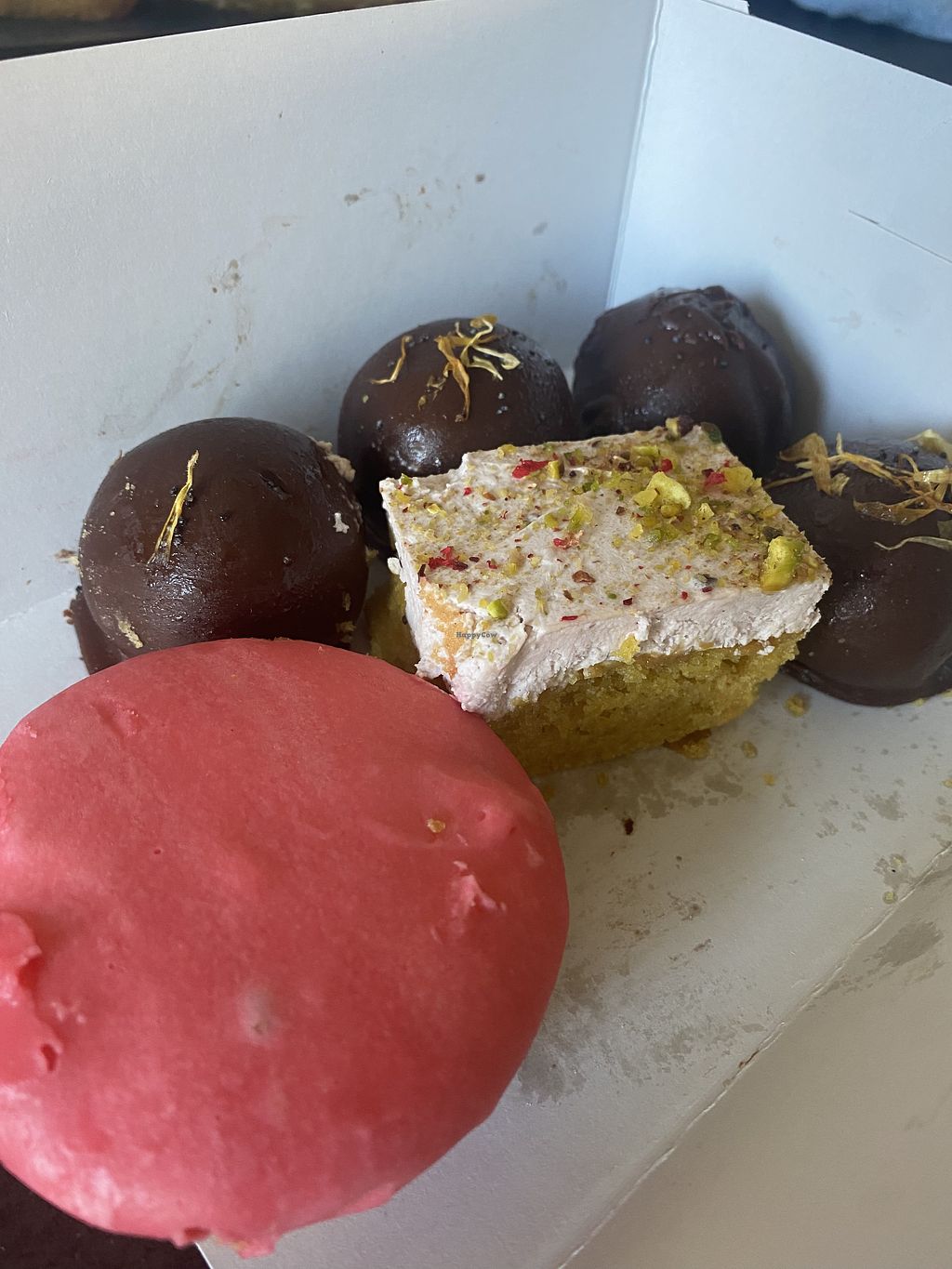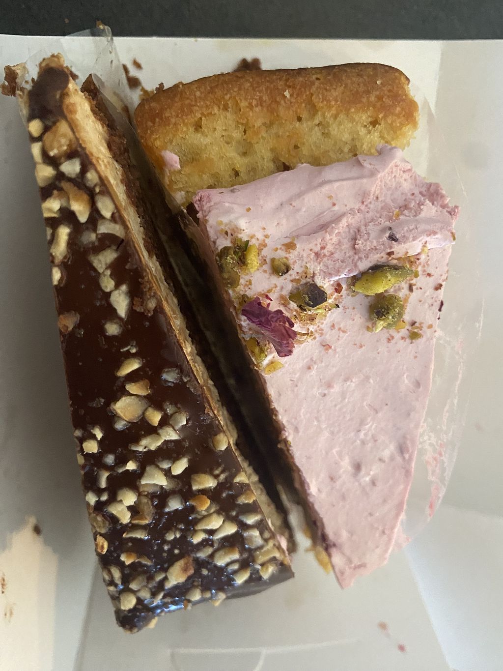 Vegan sesam caramel shortbread (quite good), vegan red velvet slice (g…