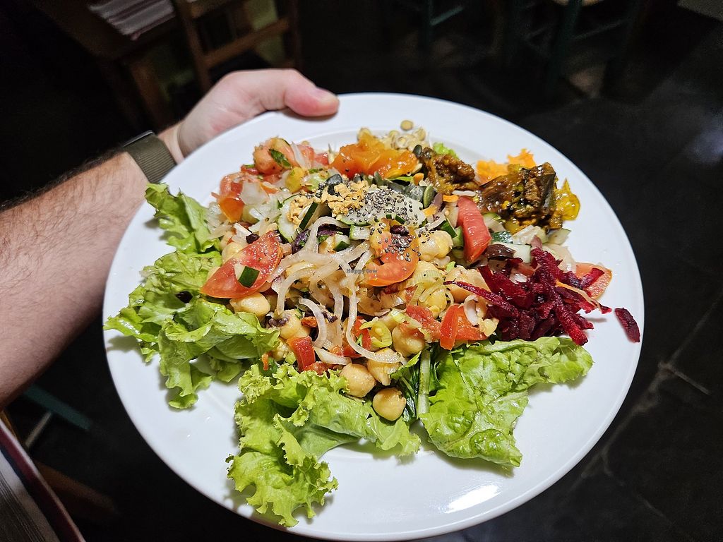 Um lugar agradável, simples, descolado e com bom cardápio vegano e vegetariano. Comida boa, saborosa e bem servida. Chegamos cedo para o jantar, antes das 19:00. Por volta das 21:00, começou música ao vivo com músicos muito bons.