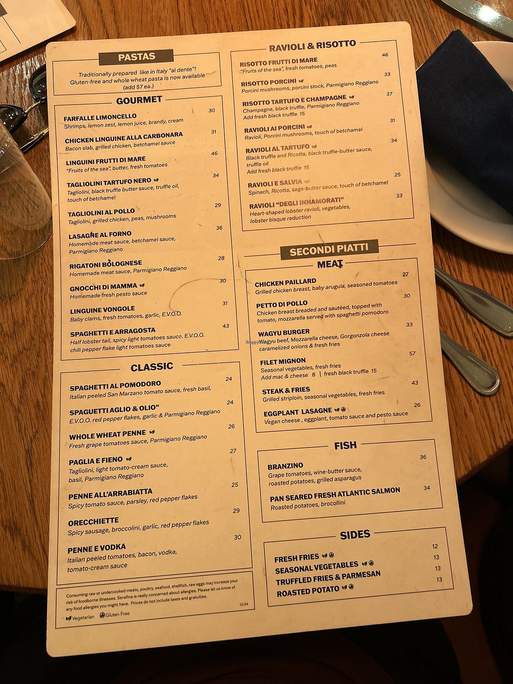 My wife and I both had ravioli options (vegetarian, not vegan) and thoroughly enjoyed our food. The waitress took quite a while to come take our order even though the restaurant was not even half full and seemed disappointed we only ordered one dish each.