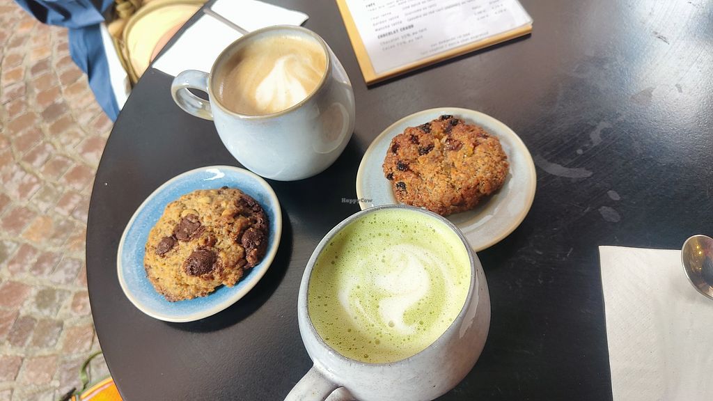 Read morePros: Two types of non dairy milk, Matcha latte and cookies, Friendly service on a pretty cobbles street