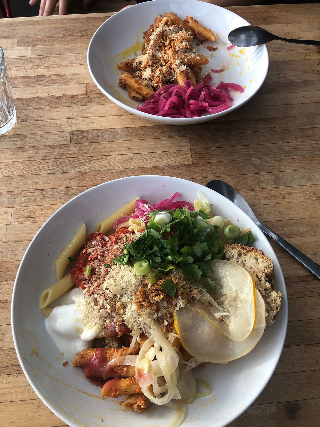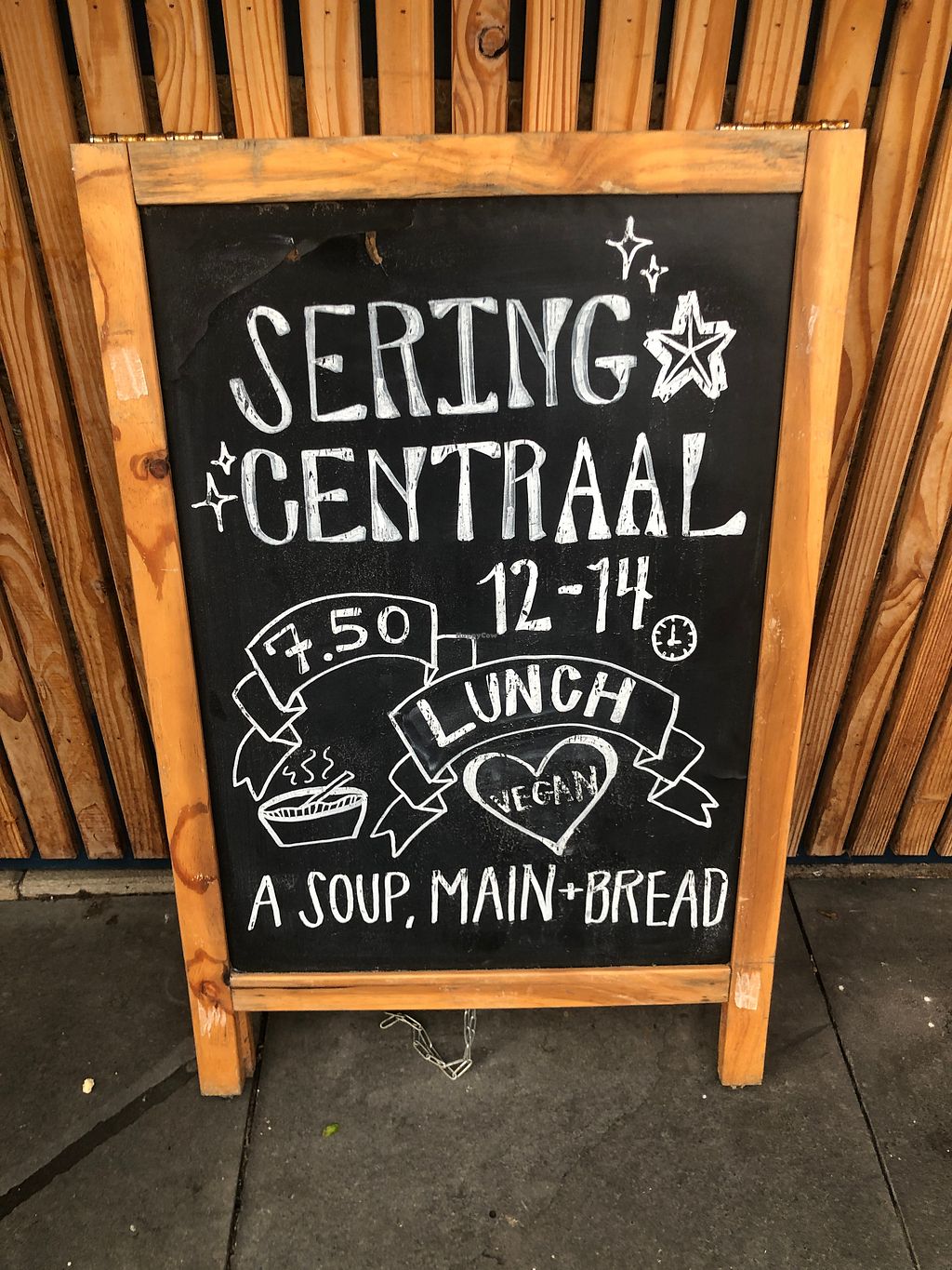 Set in the same venue as Testtafel and run by the same folk Sering offers a simple quick healthy vegan meal. They offer a load of interesting toppings, sauces and the like to make your pasta or whatever more exciting and although the food finishes around 2pm you can hang around in the warm greenhouse style building all afternoon if you like.