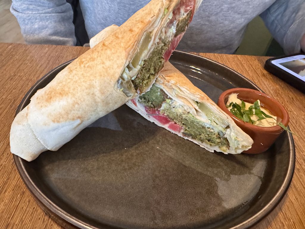 Heerlijke wraps met falafel en bloemkool. Mooi restaurant met ruime vegan keus. Gezellige sfeer en vriendelijk personeel. Hier komen we zeker terug
