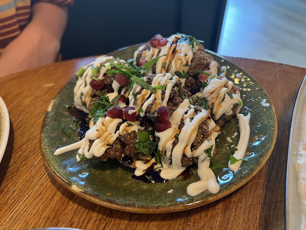 Est. March 2025. Vegetarian Middle Eastern cuisine. Many dishes are vegan, which may include hummus, baba ganoush, muhammara, kibbeh nayeh, ful, fried cauliflower, (filled) falafel, okra, green beans, tabouleh, salads, wraps, mujadara and bulgur. Open Wed 17:00-23:00, Thu 17:00-00:00, Fri-Sat 12:00-00:00, Sun 12:00-23:00. Closed Mon.