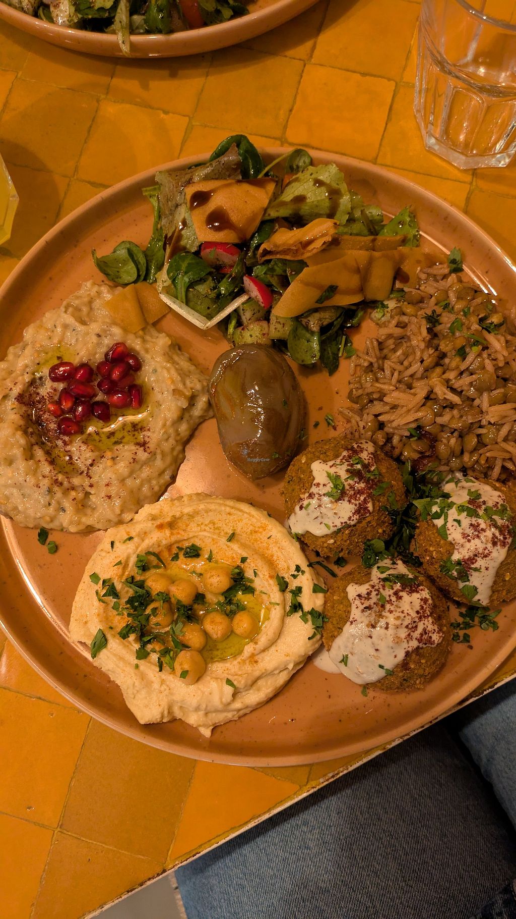 Nach einem langen Tag auf der Expo ohne veganes essen war es Zeit für ein Schmankerl am Abend. Es gab eine große mezze Platte. Alles homemade und richtig, richtig lecker!