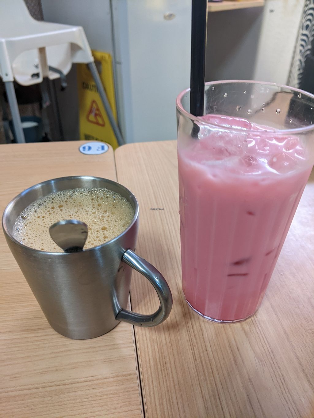 Vegan teh halia (ginger tea) and Bandung (rose milk)