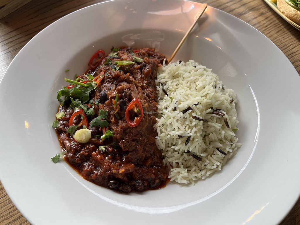 Not sure why this was given a 1 star review (though the only previous review was from 2022). We had lunch on a busy Saturday and the food was absolutely fine as was the ambience. We got a nice table overlooking the park gates. I had the pulled mushroom chilli while my partner opted for the beyond burger and chips, washed down with a nice glass of rosé and a pint. Perfect!