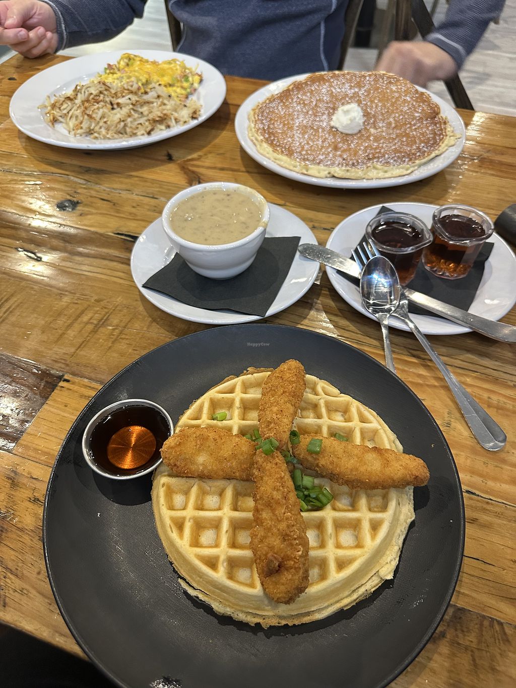 The vegan chicken and waffles were good but the least favorite compared to the vegan papas and vegan chicken and waffles.