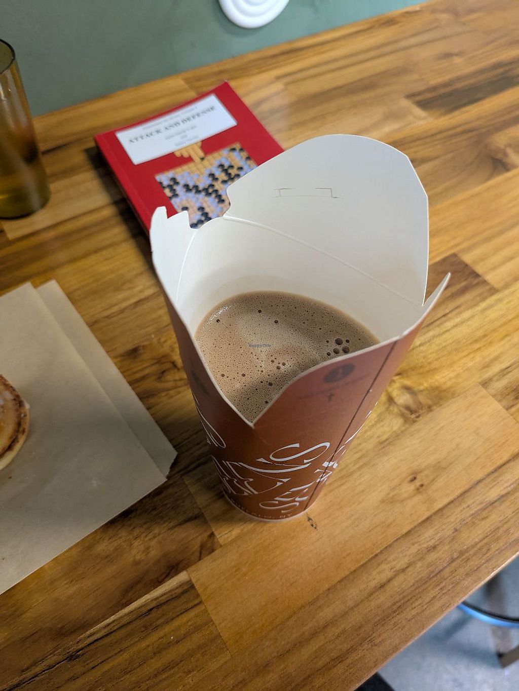 Seasonal fall latte with nutmeg, brown sugar, other stuff, and cold fo…