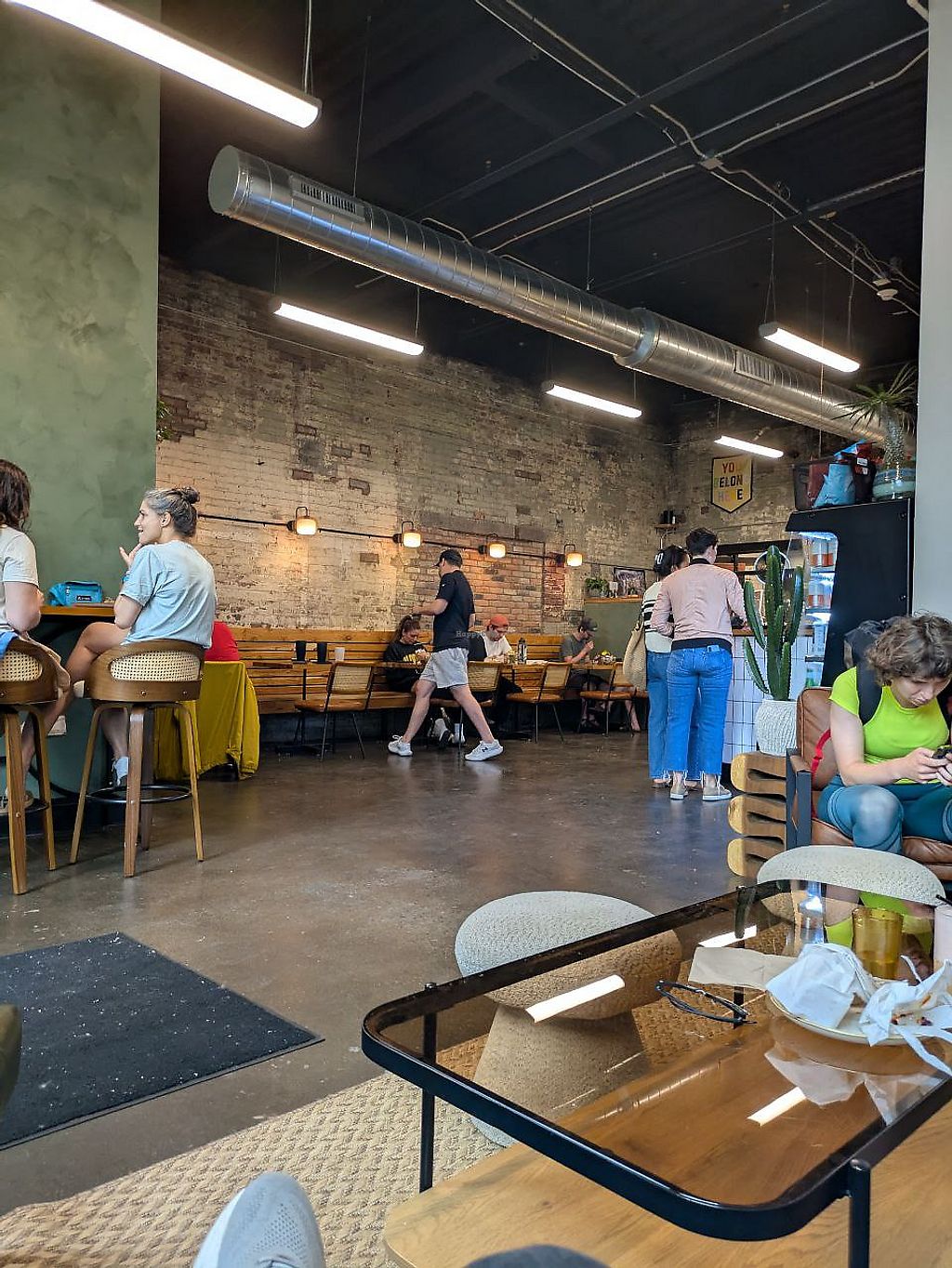 Tofu burger. Broccoli, kale, roast chickpeas, blackened tofu, on focca…