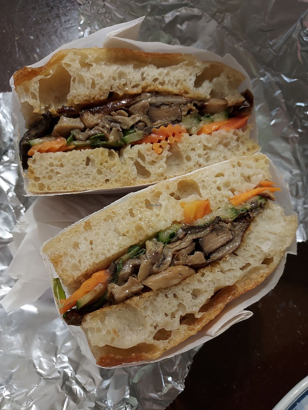 Hoisin mushroom sandwich with Flat 12 mushrooms.