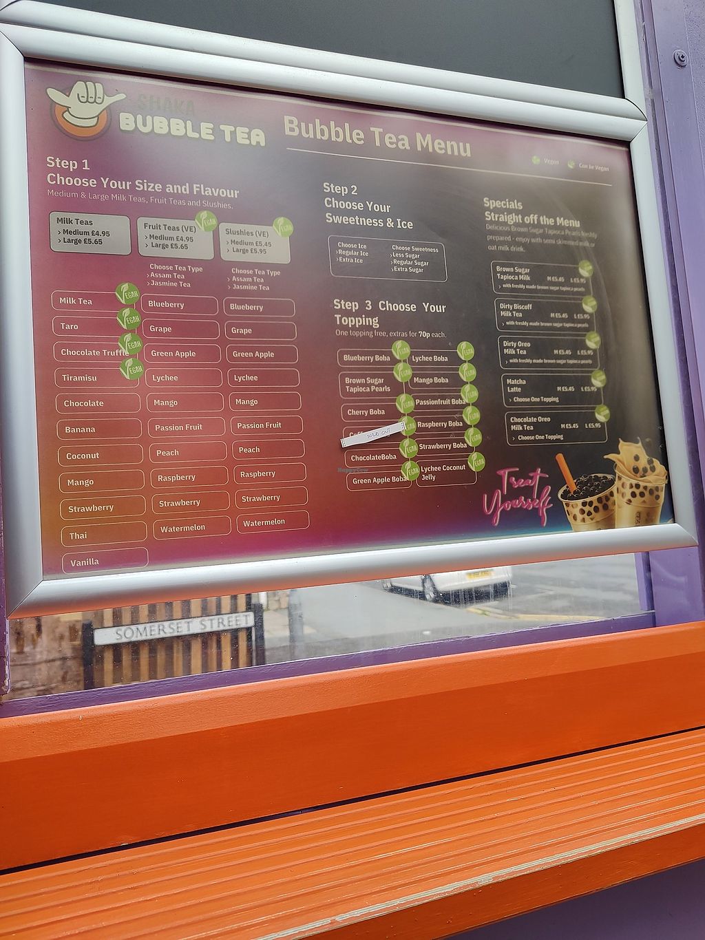 Read moreAt the time of visiting, I'd say that about 3/4 of the drinks were suitable for vegans. This means there are vegan options across all their menus, including the Bubble Teas, Specials, Dole Soft Serve & Milkshakes. The menu contains vegan labels, including on the added boba menu, and the drinks that are not made with a vegan recipe but can be adjusted to be vegan have a 'can be vegan' sticker. They use oat milk as a base for vegan drinks. Some of the vegan items on their menu include: