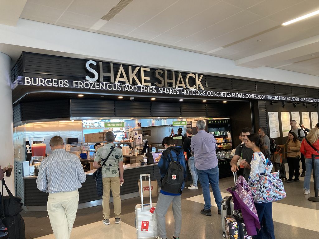 This burger chain place had no vegan burgers listed on its menu. They do offer a vegetarian burger with cheese. A HappyCow listing for another location of Shake Shack says "a veggie burger can be made vegan by subbing gluten-free bun or lettuce wrap and omitting bbq sauce, crispy onions and cheese"--but then what are you left with? Furthermore, the staff here is overworked as it is, so good luck in getting a complicated order straight.