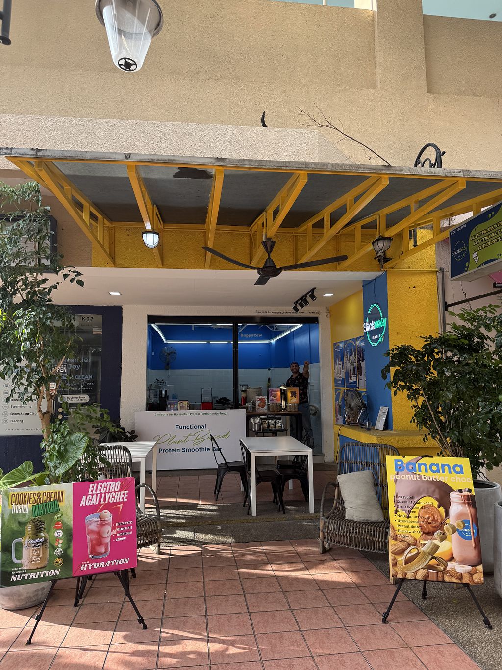 Shake bar offering plant-based shakes with add-ons such as protein powder, prebiotics, chia, flax seed, and berries, as well as coffee-based smoothies. Also serves cakes and overnight oats. Open Mon-Sat 9:00am-6:00pm, Sun 9:00am-6:00am. Closed Sat.