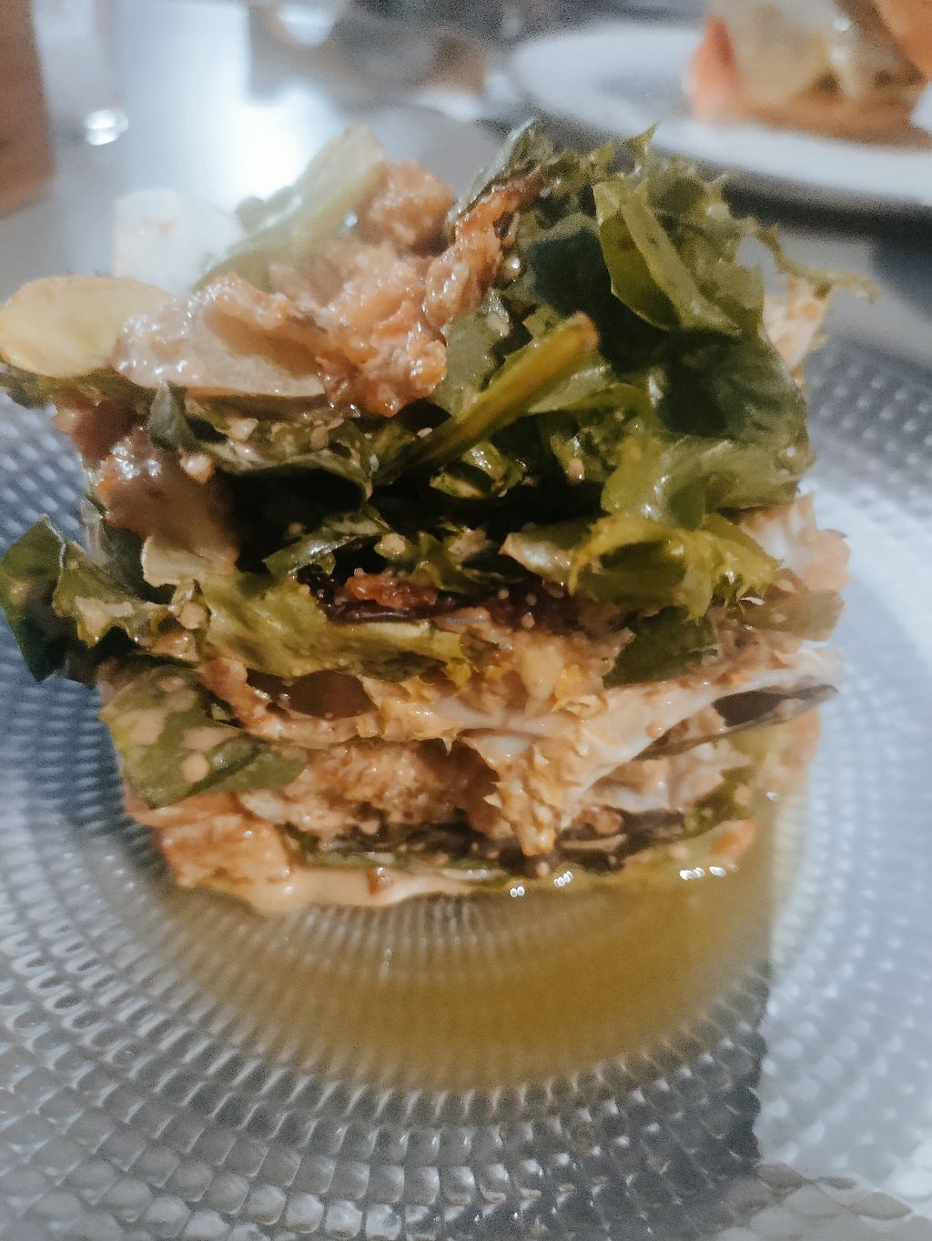Read moreThere were a few vegan choices, plus the dish with aubergine turned vegan since they removed the egg from the recipe. We chose the salad and the Morteruelo (which is a veganized recipe from a traditional dish).