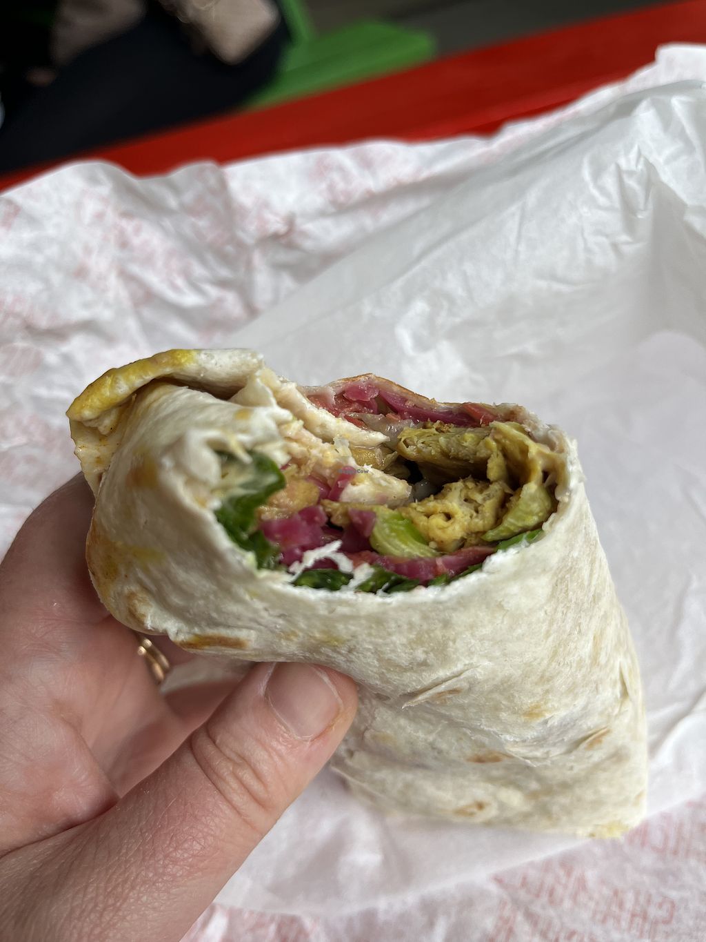Very bland, loads of iceberg salad, a little of vegan ‘chicken’. Sadly not worth it.