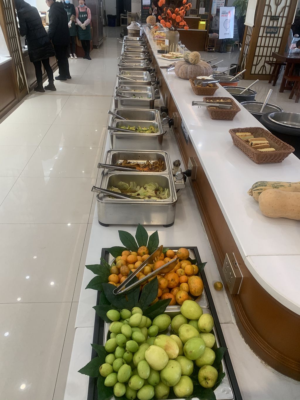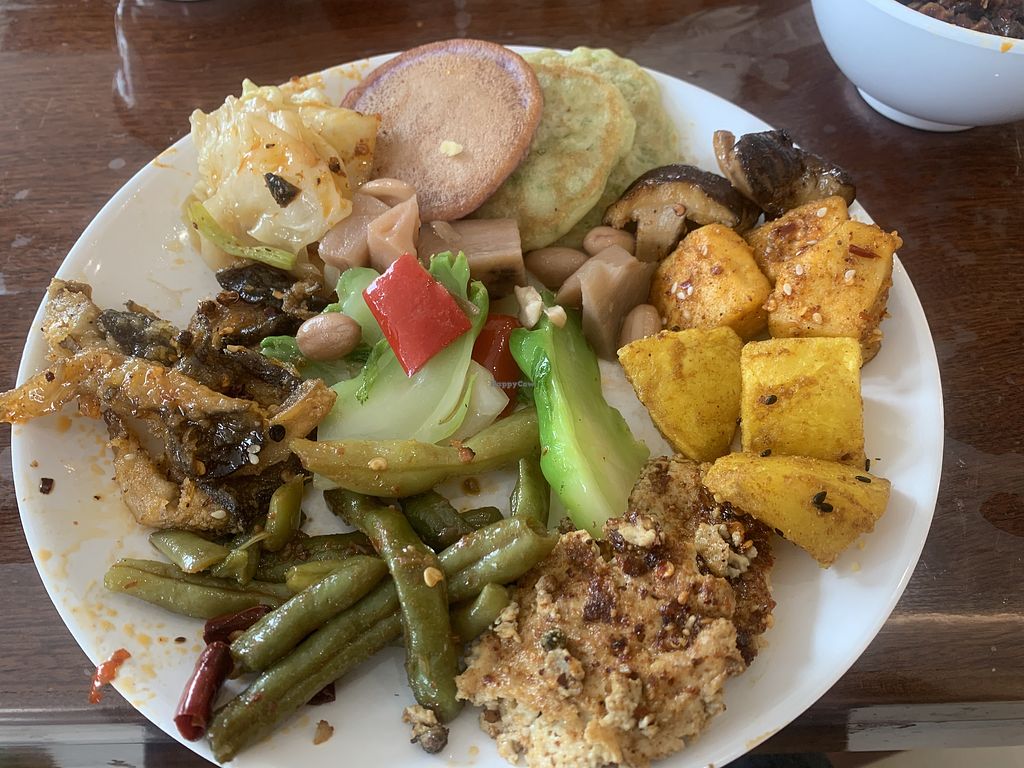 Chinese style all-you-can-eat-buffet. Serves salads, snacks, stir-fry vegetables, fried rice, noodles, millet, congee, steamed buns, baked potatoes, tofu dishes, fruits, sweets and drinks. (Possibly 100% vegan. Please verify with owner/staff and send HappyCow an update.) Address: 经开区迎霞路中段教苑花园1-1幢商铺. Open Mon-Sun 11:00am-1:00pm, 5:00pm-7:00pm.