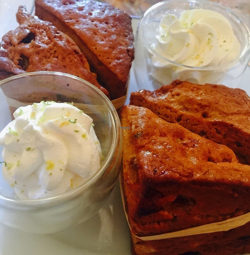 The scones at the Vegan Afternoon Tea, served warm with homemade cocon…