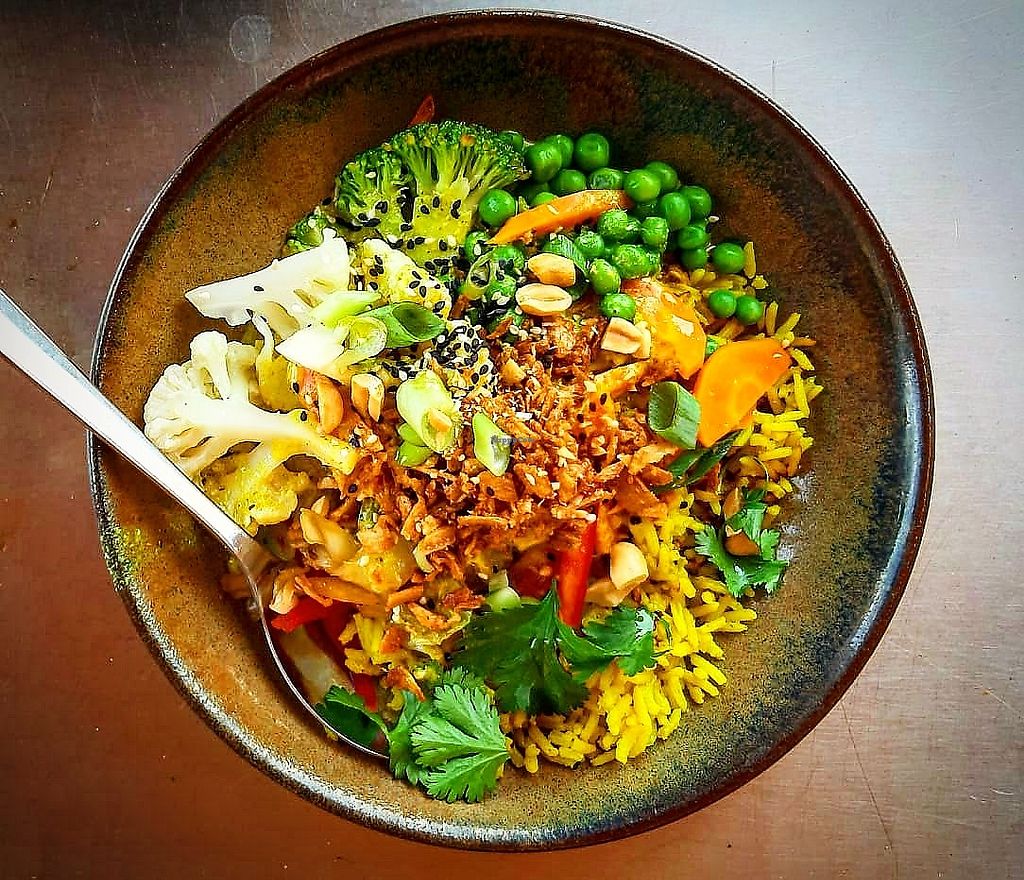 Had the Indian curry bowl. Lovey taste, spicy but not overwhelming.