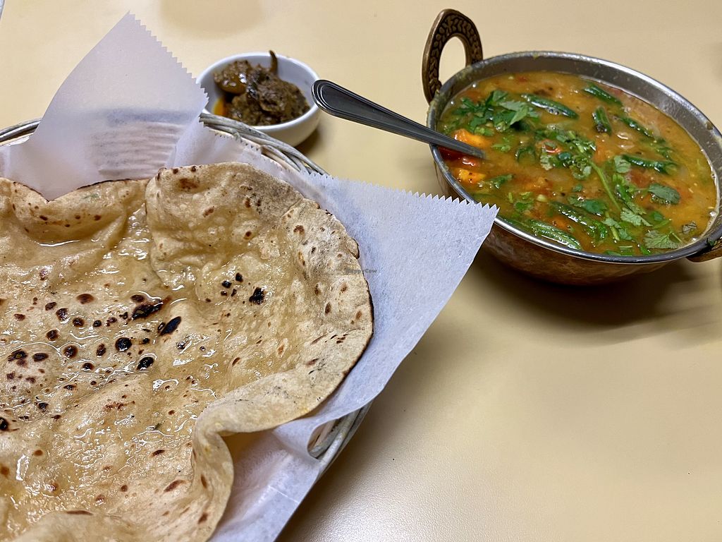 Surprisingly healthful vegan options at this little restaurant tucked away in a shopping plaza. Courteous service and good food. I ordered a salad, soup, roti, and pickle. Flavors were nice, and everything tasted fresh. The dal soup was excellent and I highly recommend ordering it. The salad was a bit clumsy to eat with huge pieces of raw onion, a pile of iceburg lettuce, and grapes rolling around. The interior decor seems like it could use some love. Atmosphere was a bit strange.