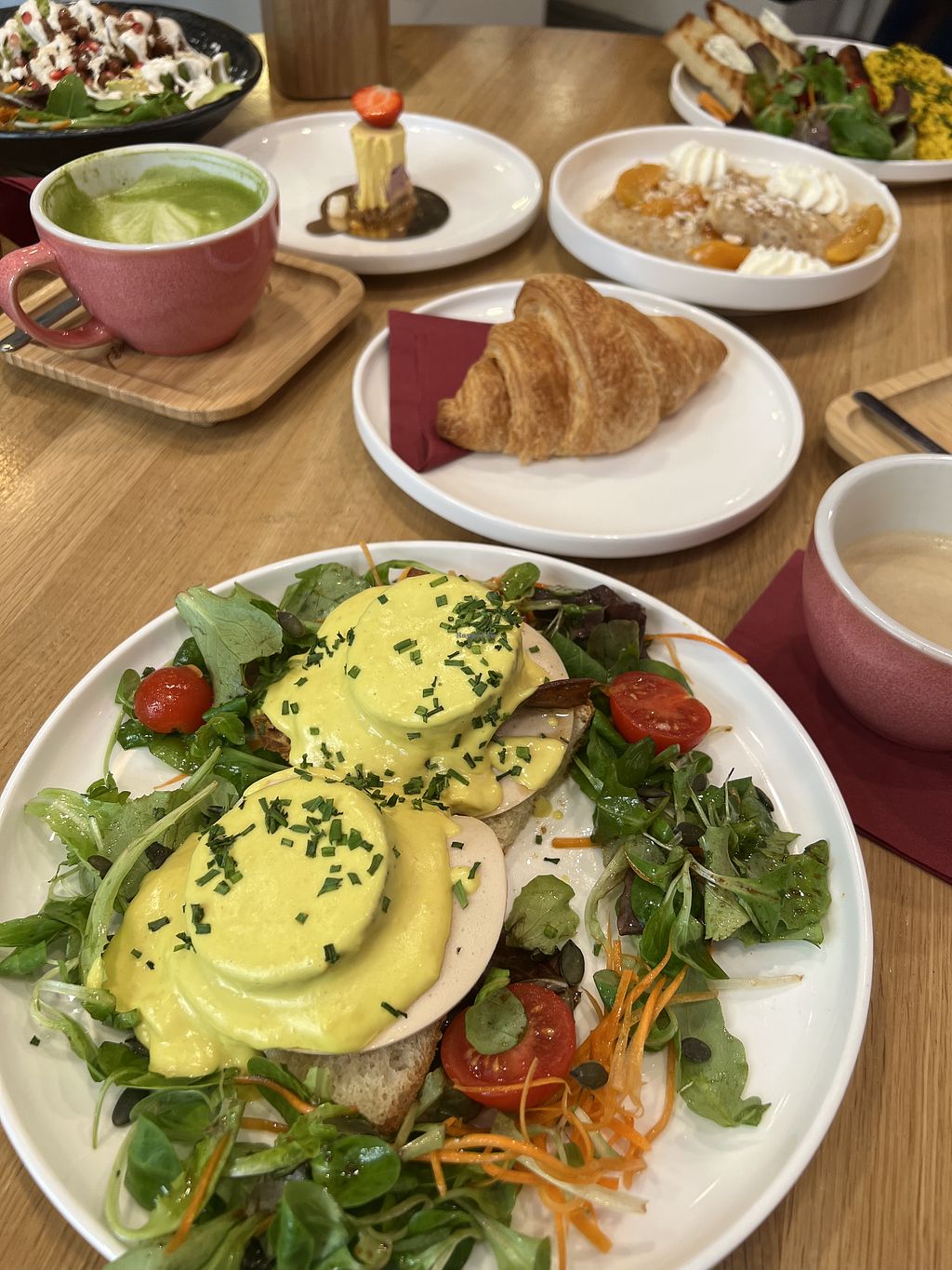 Diese kleine hübsche Cafe bietet super schöne, leckere Törtchen, Kuchen und herzhaft belegte Kroissants, Bagel, sowie außergewöhnliche Getränke: ich empfehle das Summer special mit Matcha - eine grandios e Mischung aus erfrischender Limo und Matcha Creme.