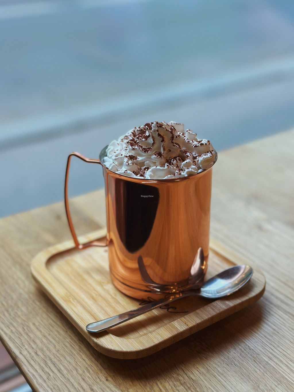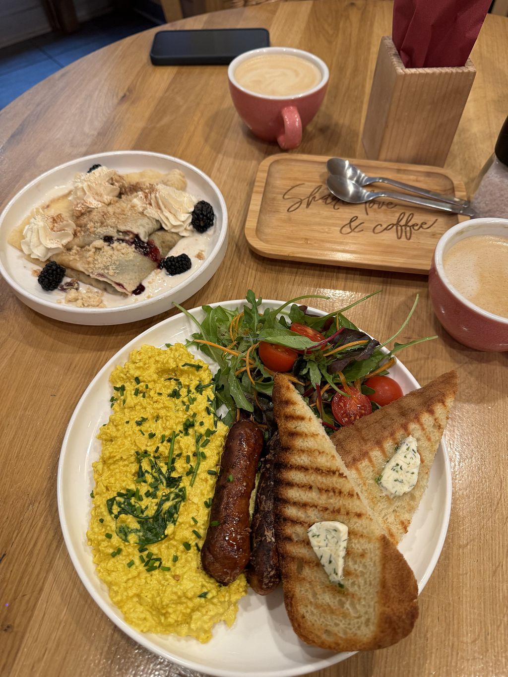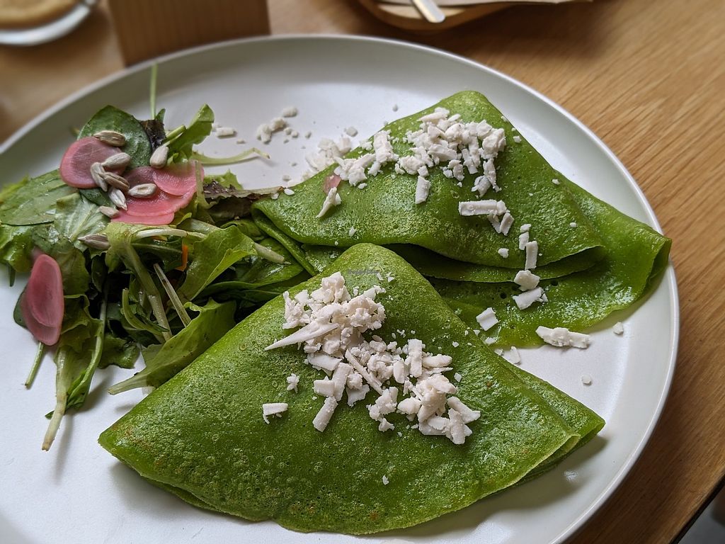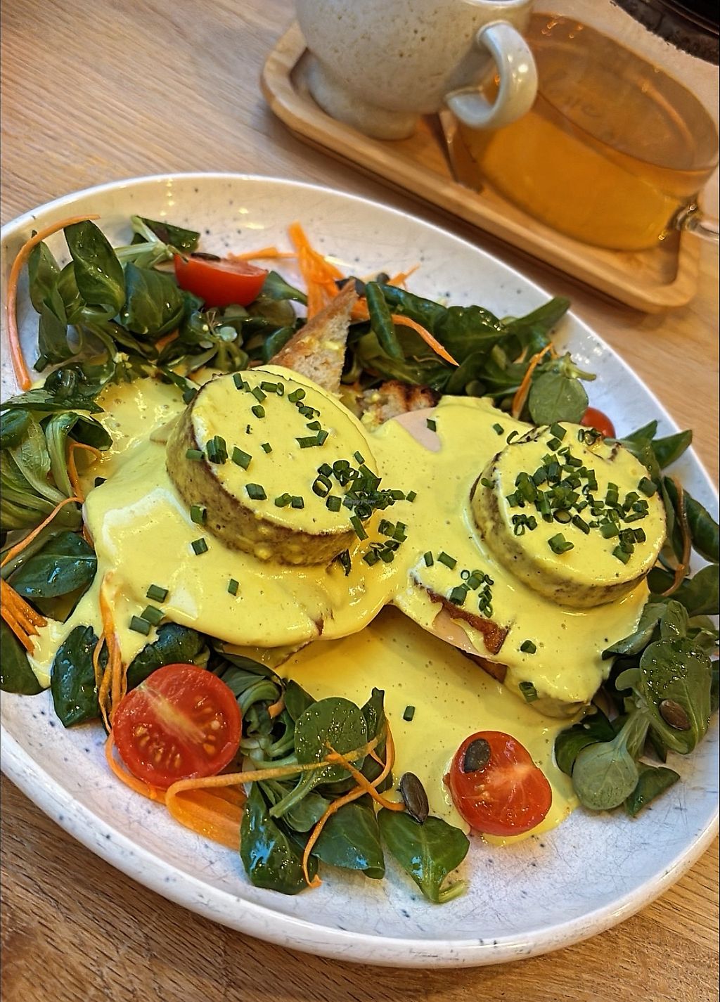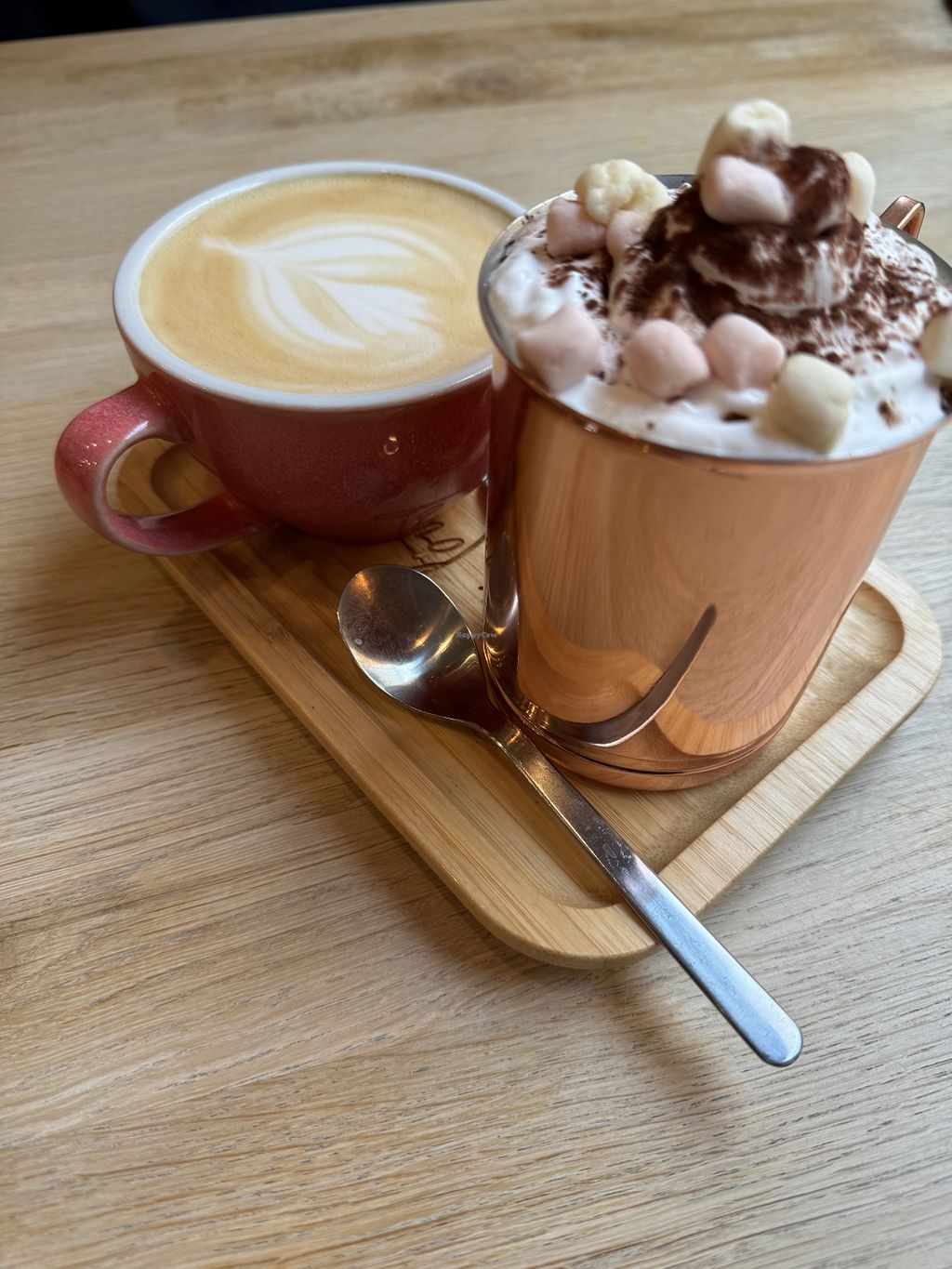 Delicious Cauliflower soup and bagel with pesto and sun dried tomatos.