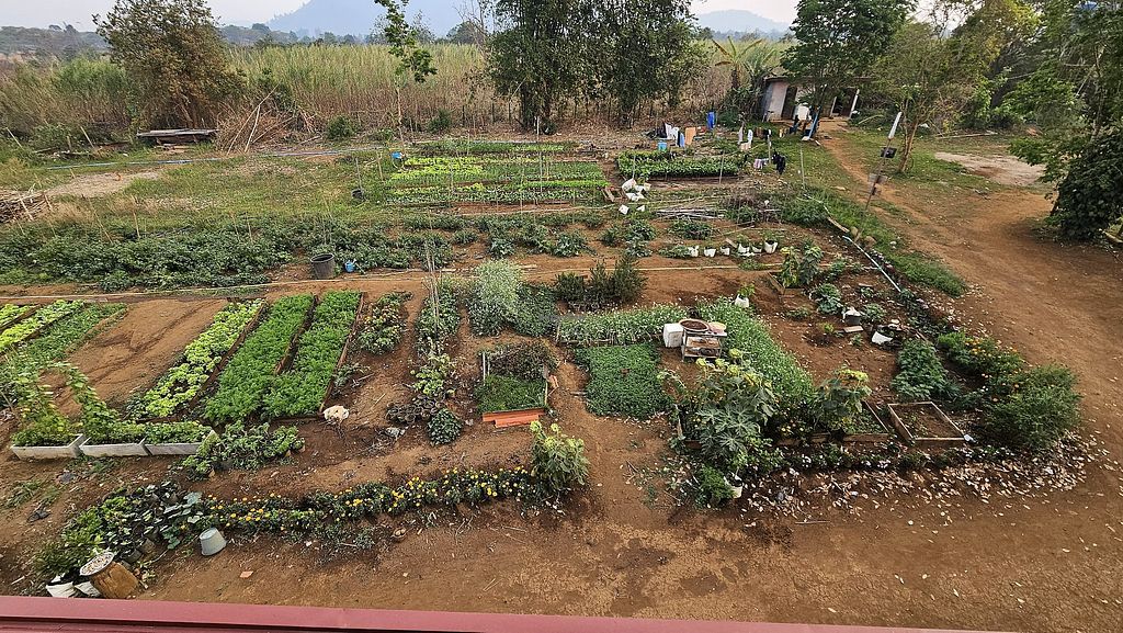 We stayed one night in a Bungalow at shared happy farm for 80 kip (3€) we got a nice family dinner and could share salat, curry, rice, pumkin soup, omlette with vegetable - besides the omlette it was all vegan and mostly from the garden. The stuff is really friendly and the animals nice😄