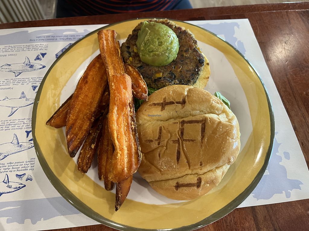 Good black bean burger with avocado on top, just asked for no cheese to make it vegan. Enjoyed the sweet potato fries and a mango lime fizzy mocktail. Great atmosphere and service. Next time we’ll try the rice bowl or a salad with tofu. Good options for vegans.
