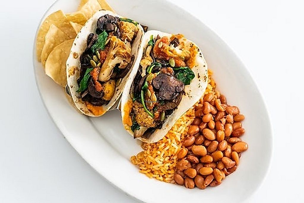 Organic Non-GMO Tofu & Veggie Taco Plate Two tofu and veggie tacos w…