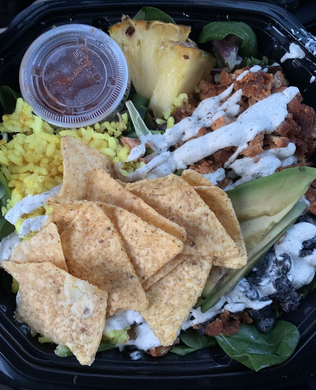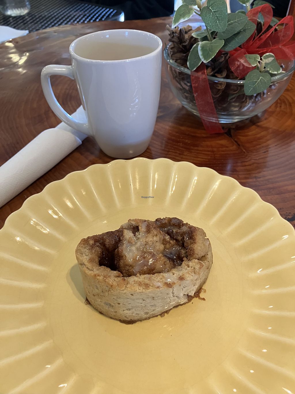 Large space with sit-down tables. I had the Hawaiian pizza (see pic). It was delicious. The orange parts are made from sunflower seed oil. Great service by the chef. I also took home a smoothie and a few bakery items including the cinnamon roll which is gluten and dairy free. #Veganuary