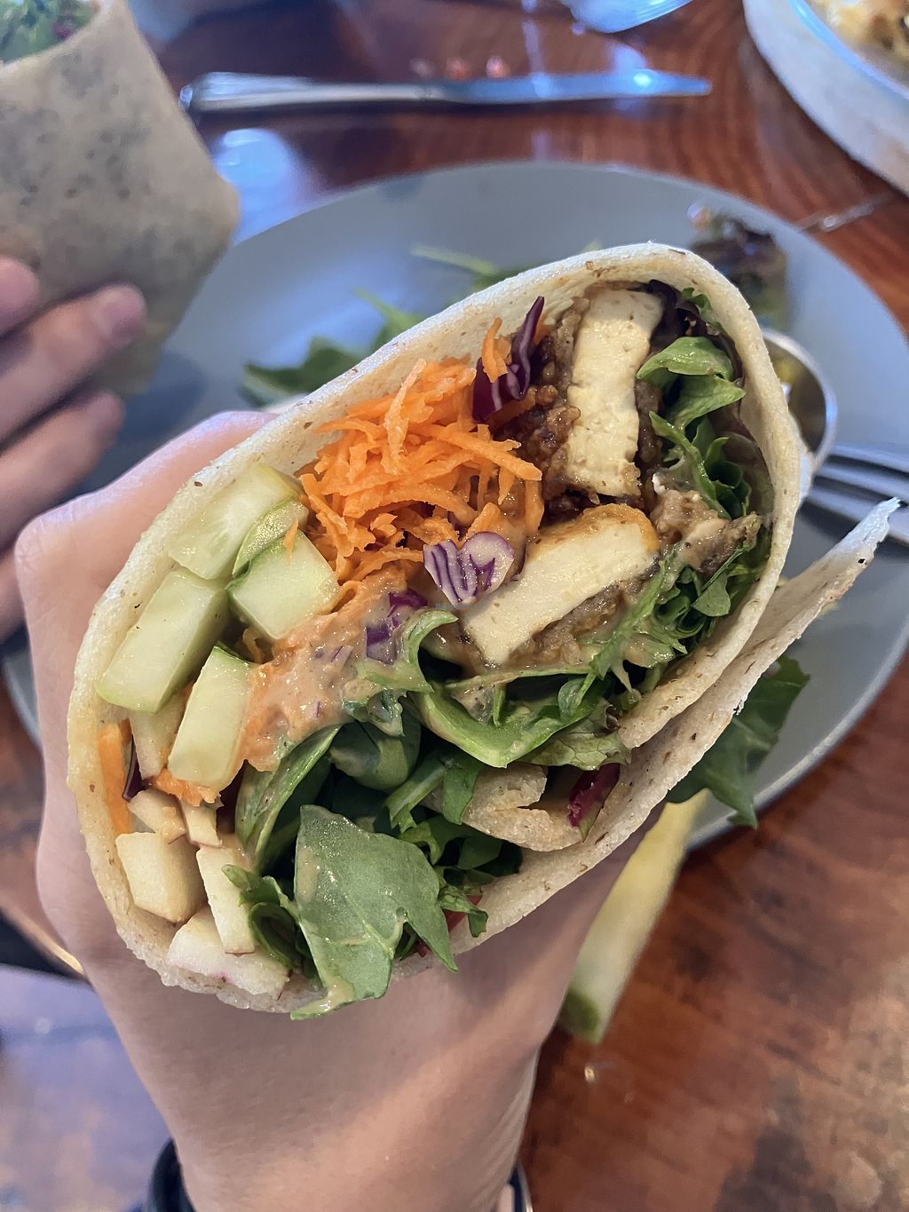 Update: had an almond protein smoothie, the Buffalo cauliflower wrap and a chocolate fudge brownie - yum yum and yum!!