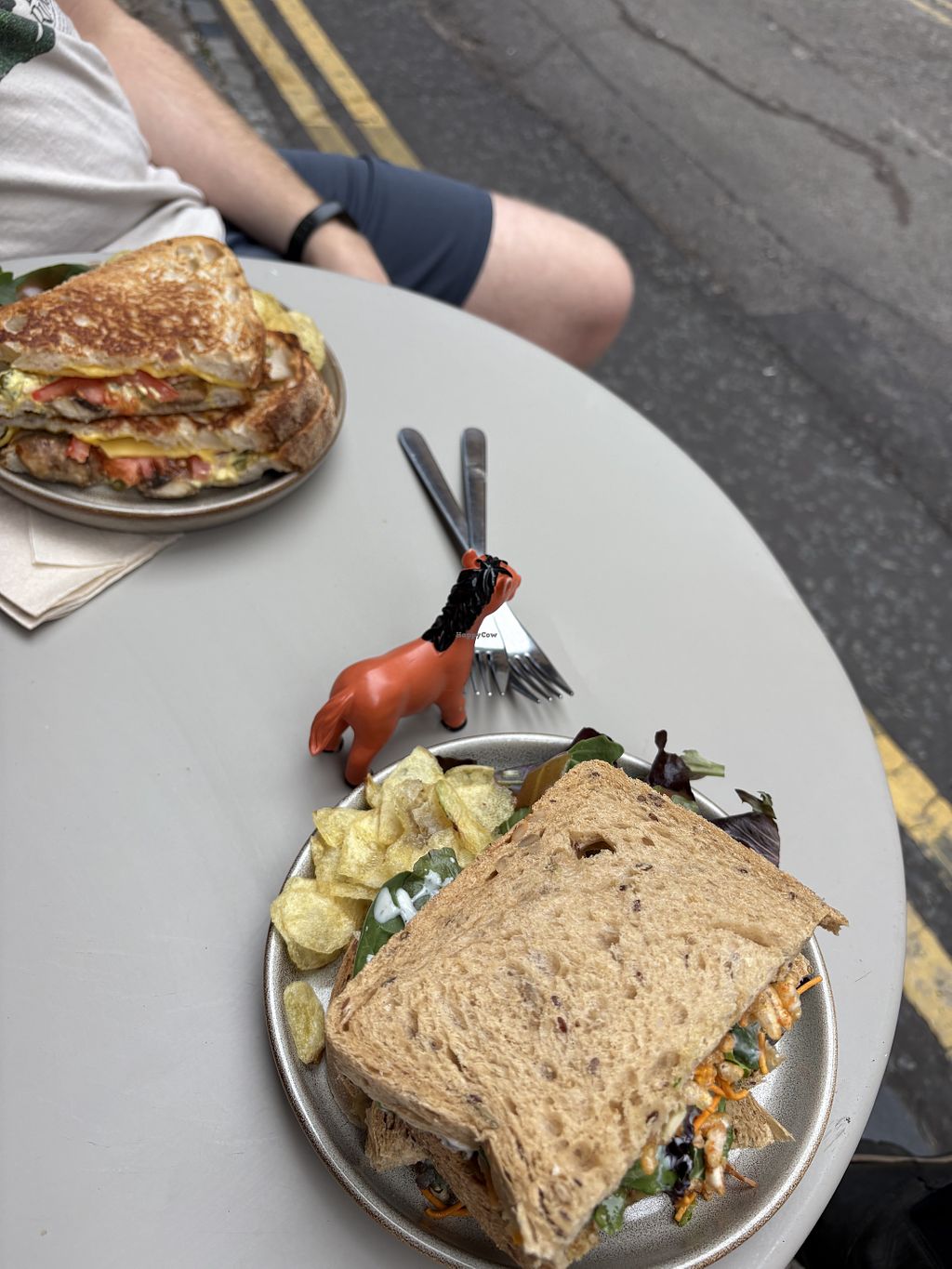 Chaat sandwich for me, vegan toasty #2 for my partner. Cute little ani…